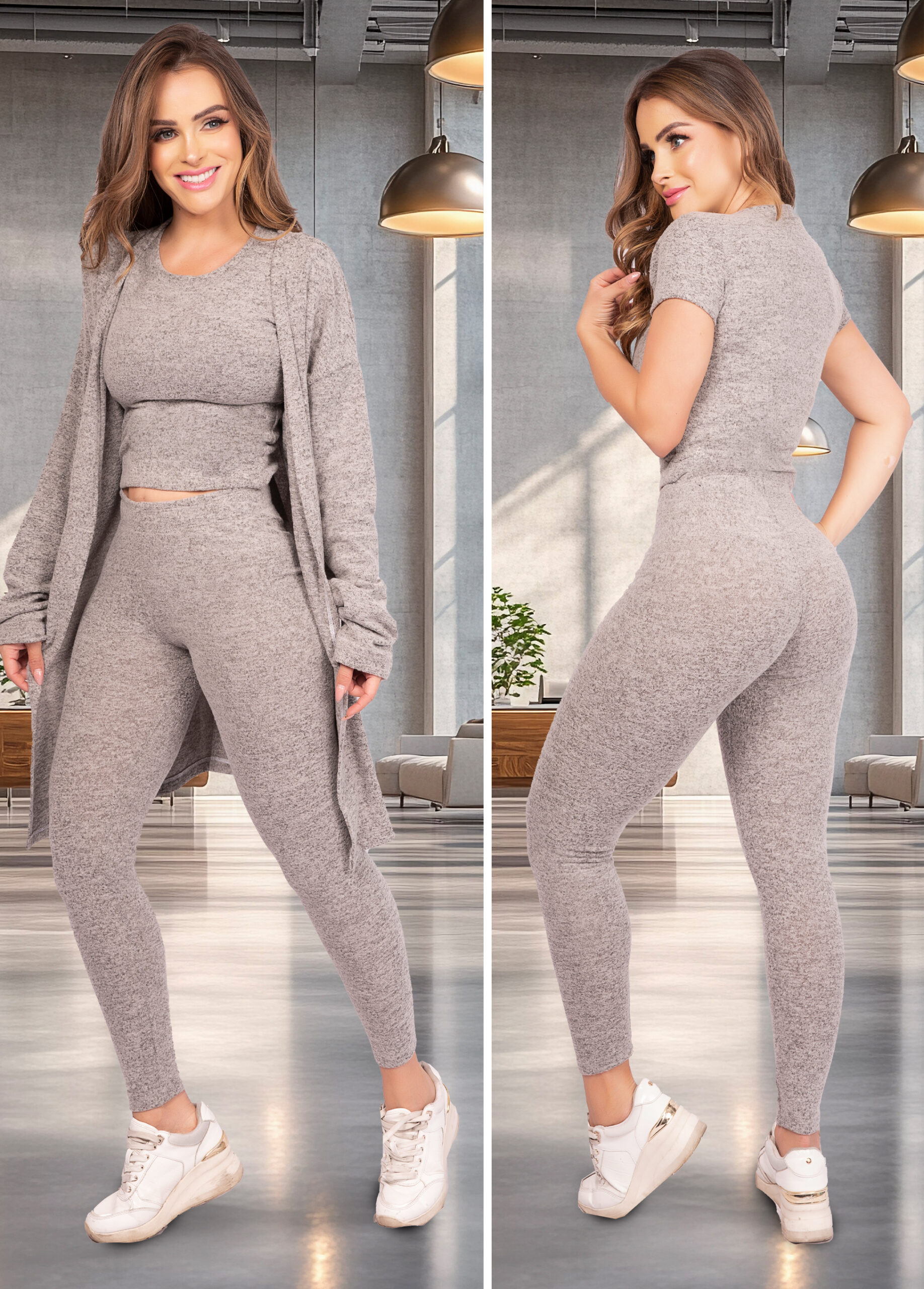 Conjunto deportivo 3 piezas elaborado en tela angora jaspeado color plomo jaspe