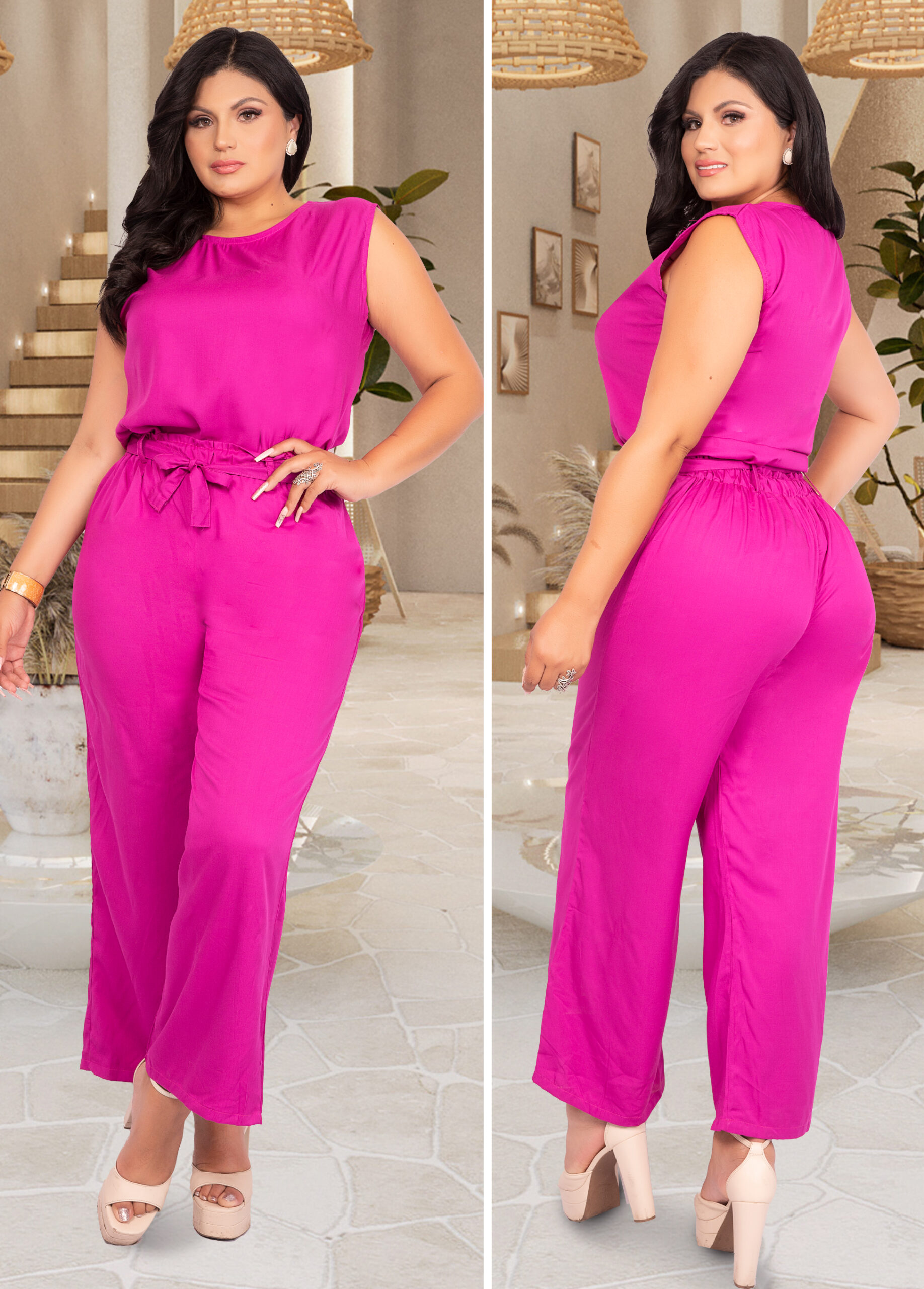Conjunto dos piezas elaborado en tela chalis color magenta