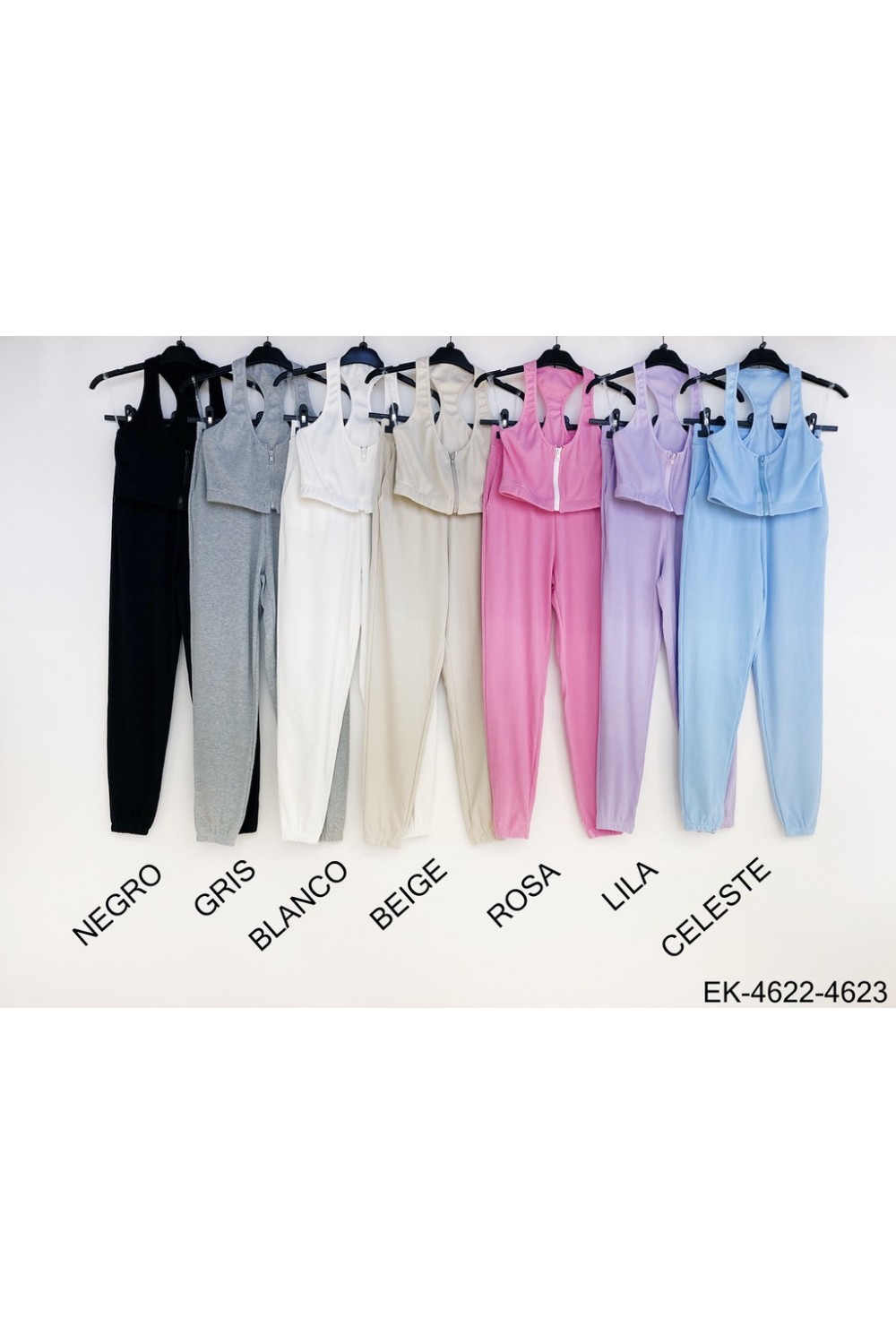 Conjunto de top y pantalón de deporte, con cremallera en el escote, y pantalón con elástico y bolsillos.