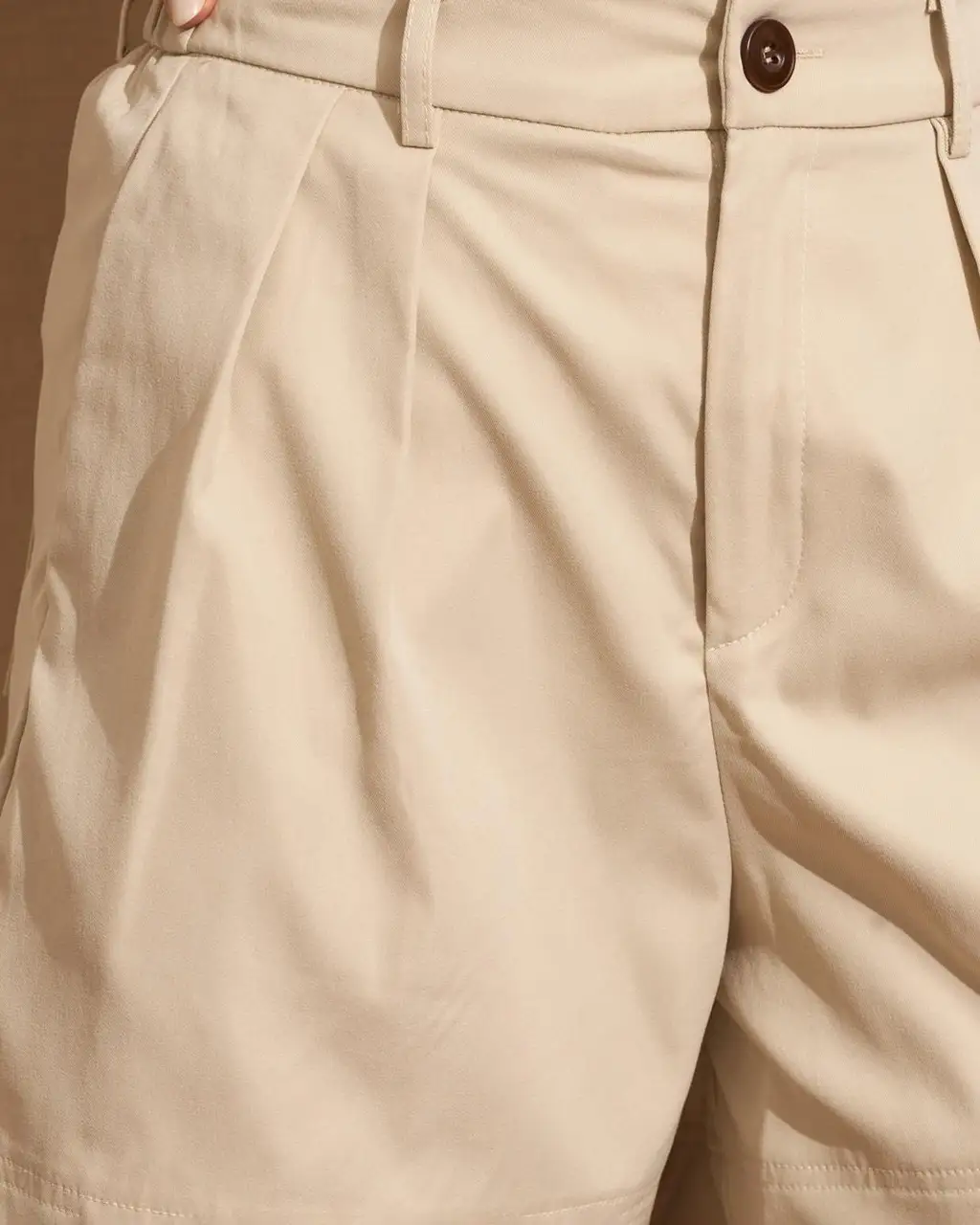 Bermuda para mujer en color beige con cintura elástica y pinzas en la parte delantera. Ideales para este verano.