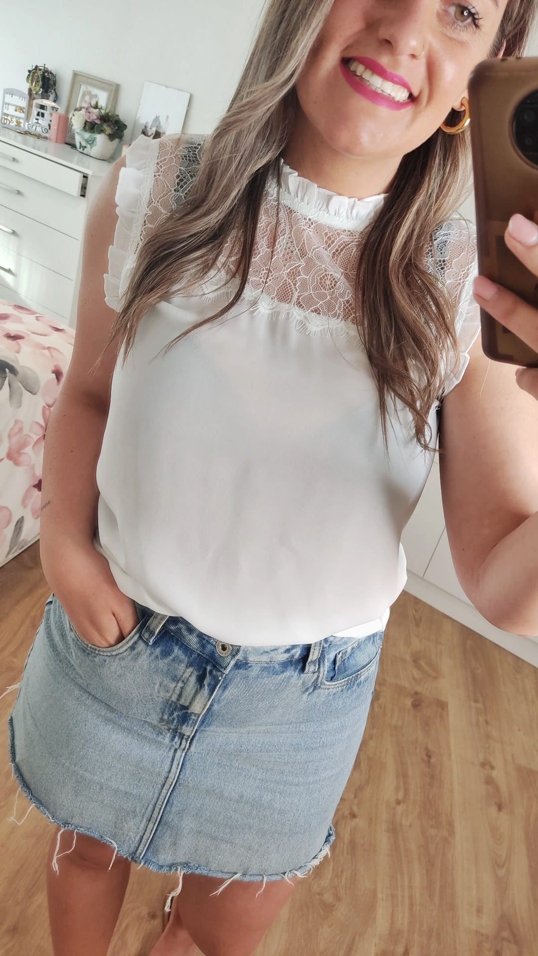 Sé el primero en valorar “Blusa escote encaje blanco”