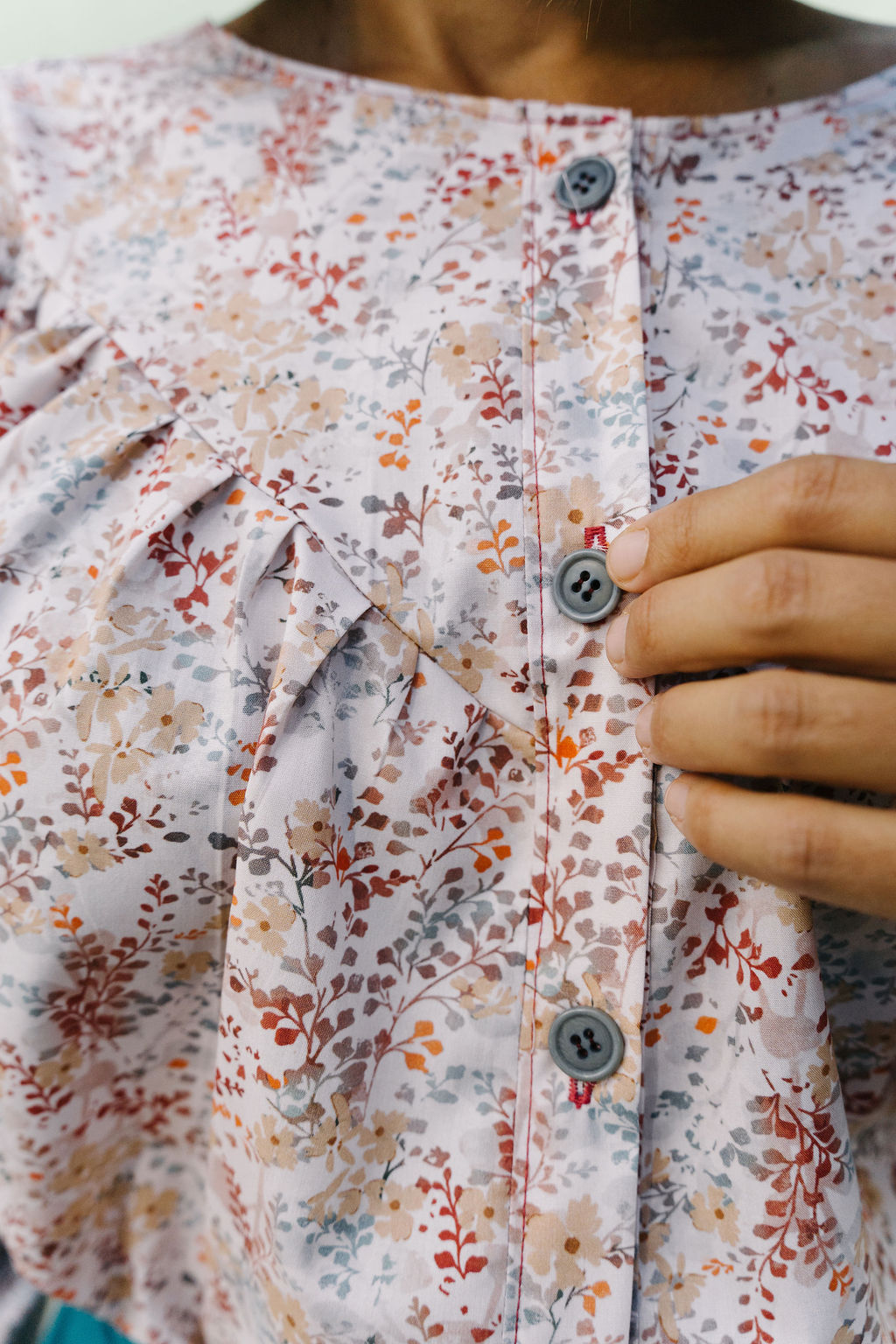 Esta camisa ya es un clásico en las colecciones de otoño, el patrón es super favorecedor, con canesú y manga larga, el estampado con tonos tierra la hacen muy ponible todos los días.