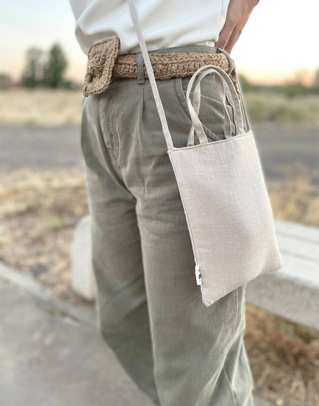 Bolso SUNSET, realizado a mano, 100% lino , Se realiza completamente a mano, desde el diseño, tejido y la confección se realiza en Asturias