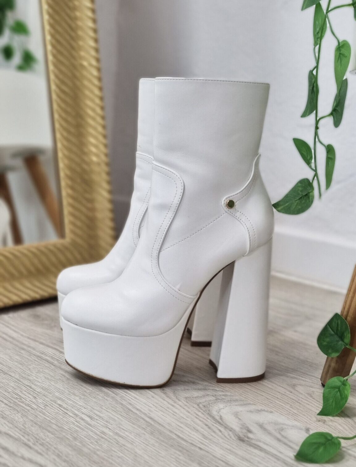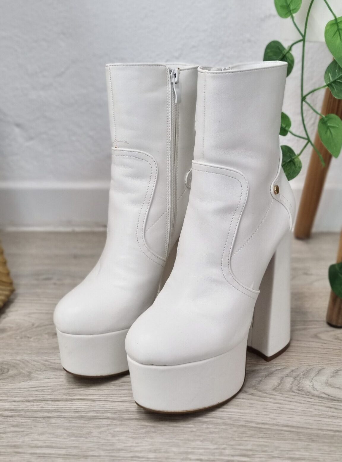 Botines blancos modelo Bratzs con plataforma y tacón grueso. Efecto polipiel.