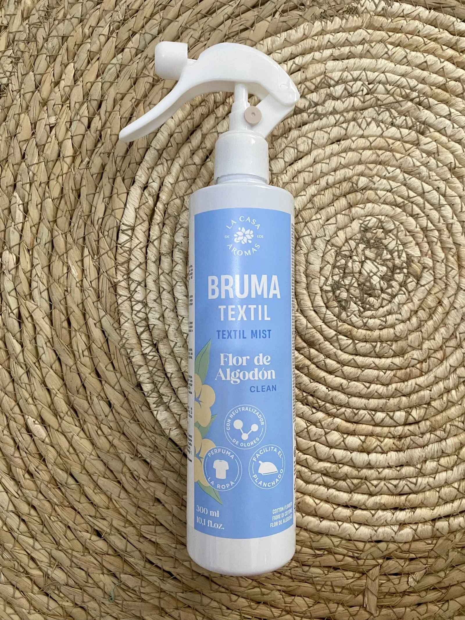 Bruma textil, facilita el planchado, elimina olores y proporciona un aroma a flor de algodón