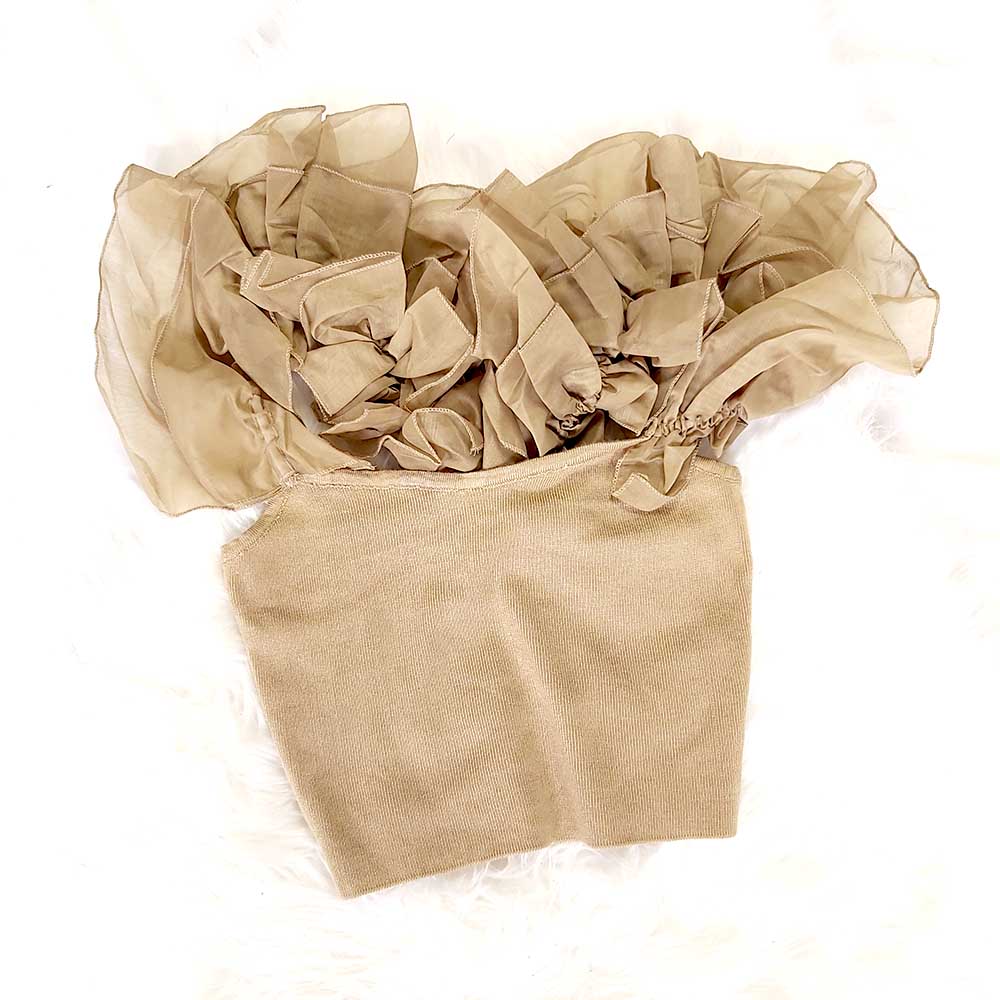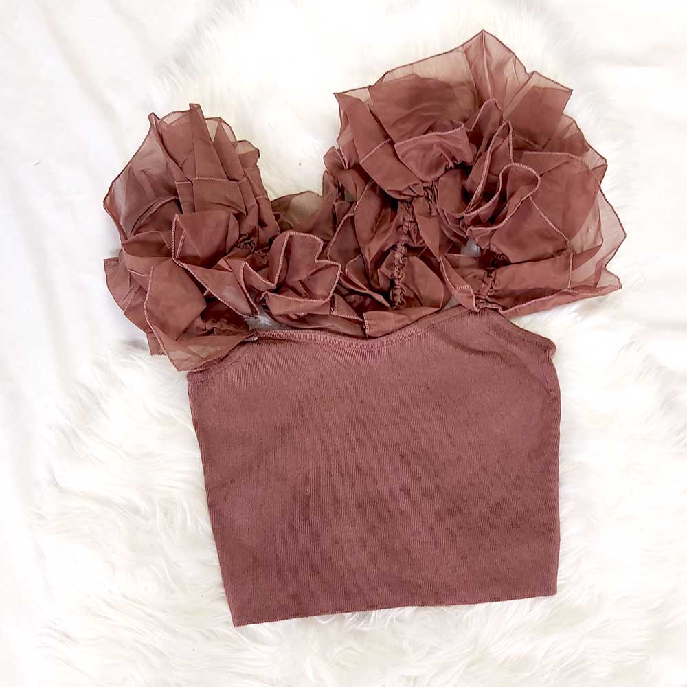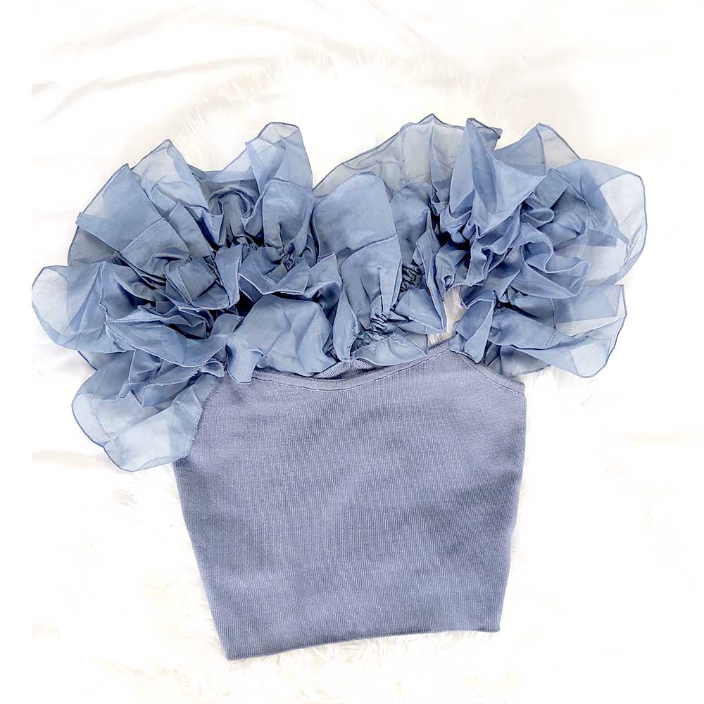 Camiseta de canalé con los tirantes de gasa en forma de volante