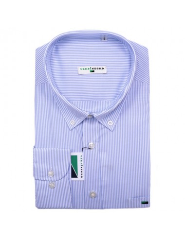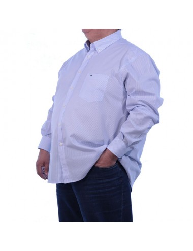 Camisa para hombre de corte clásico, con raya fina, de color blanco y azul celeste.