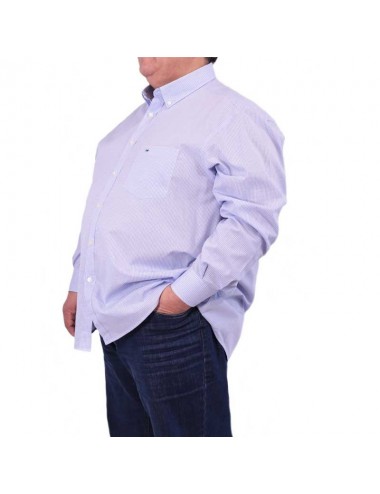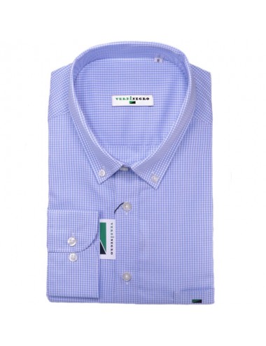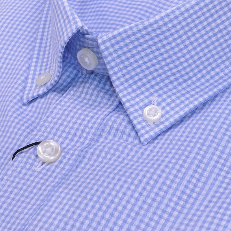 Camisa para hombre de corte clásico, con cuadro pequeño vichy de color blanco y azul celeste.