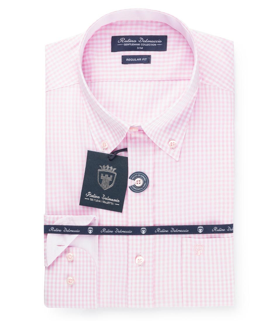 Camisa de Cuadros en patrón Regular Fit. El interior del cuello y los puños está realizado con tejido a contraste en mismo tono. Bolsillo en el pecho con bordado de la marca, cuello abotonado y puño ajustable con dos botones. Tejido de fácil planchado.