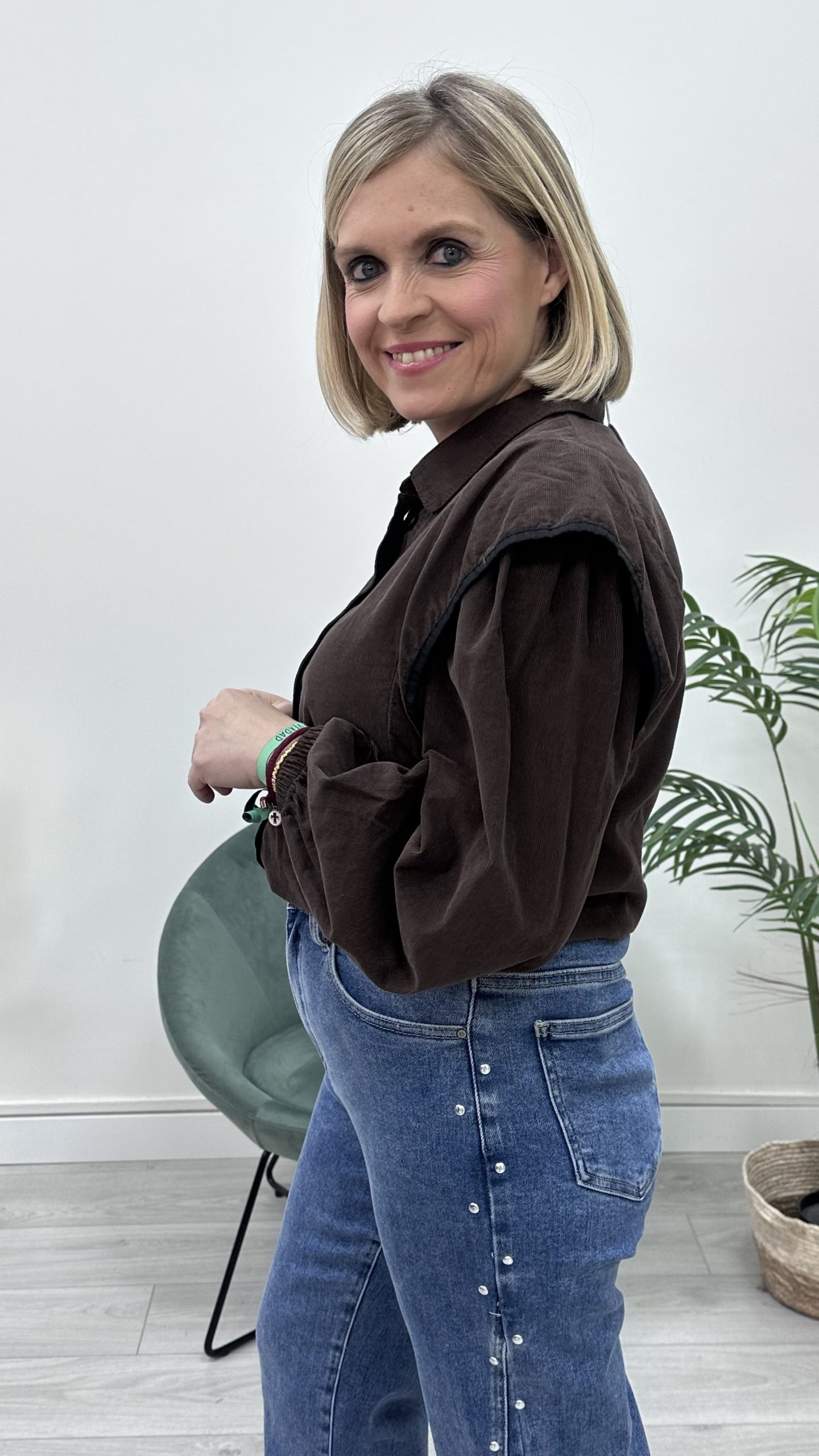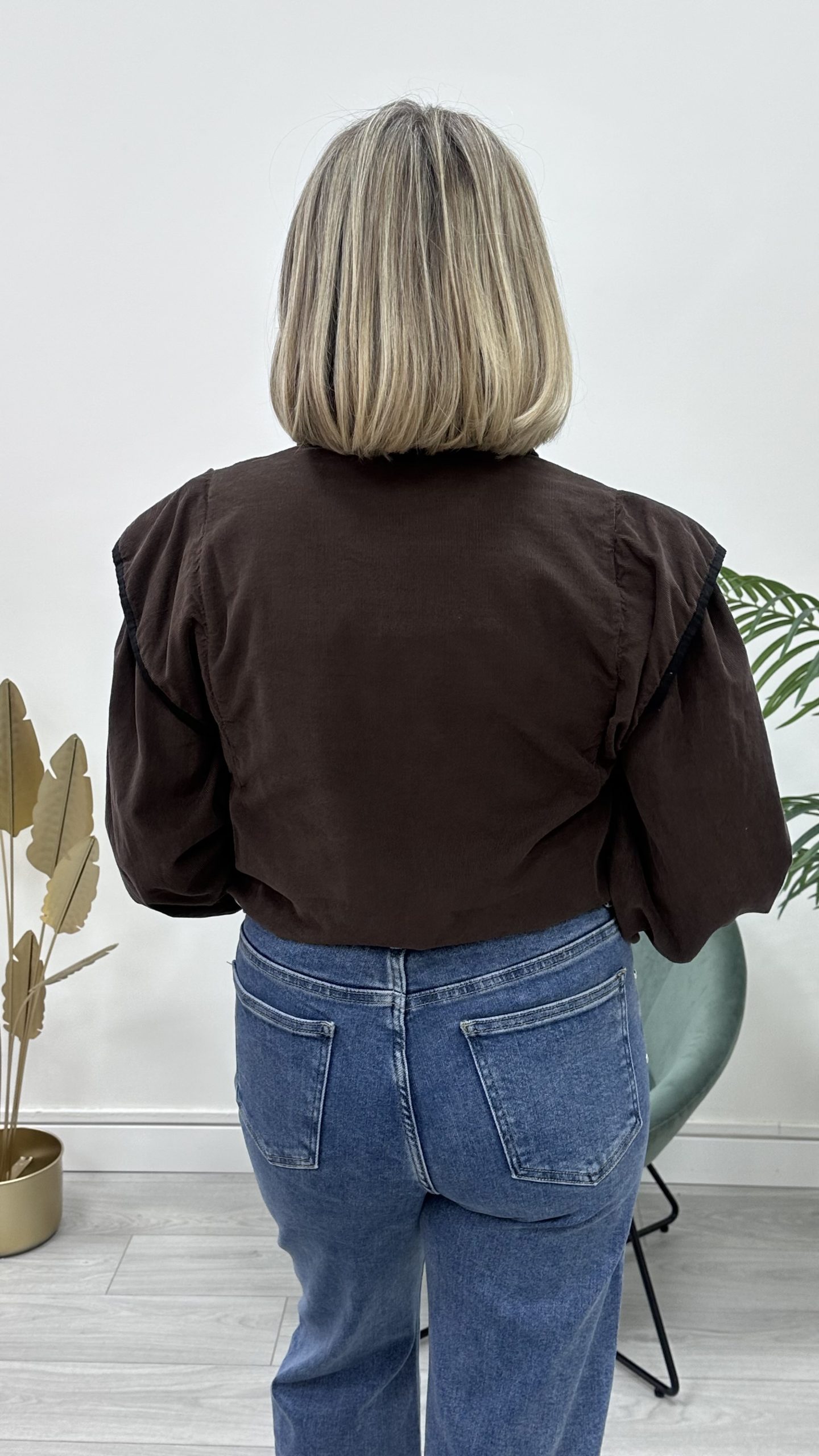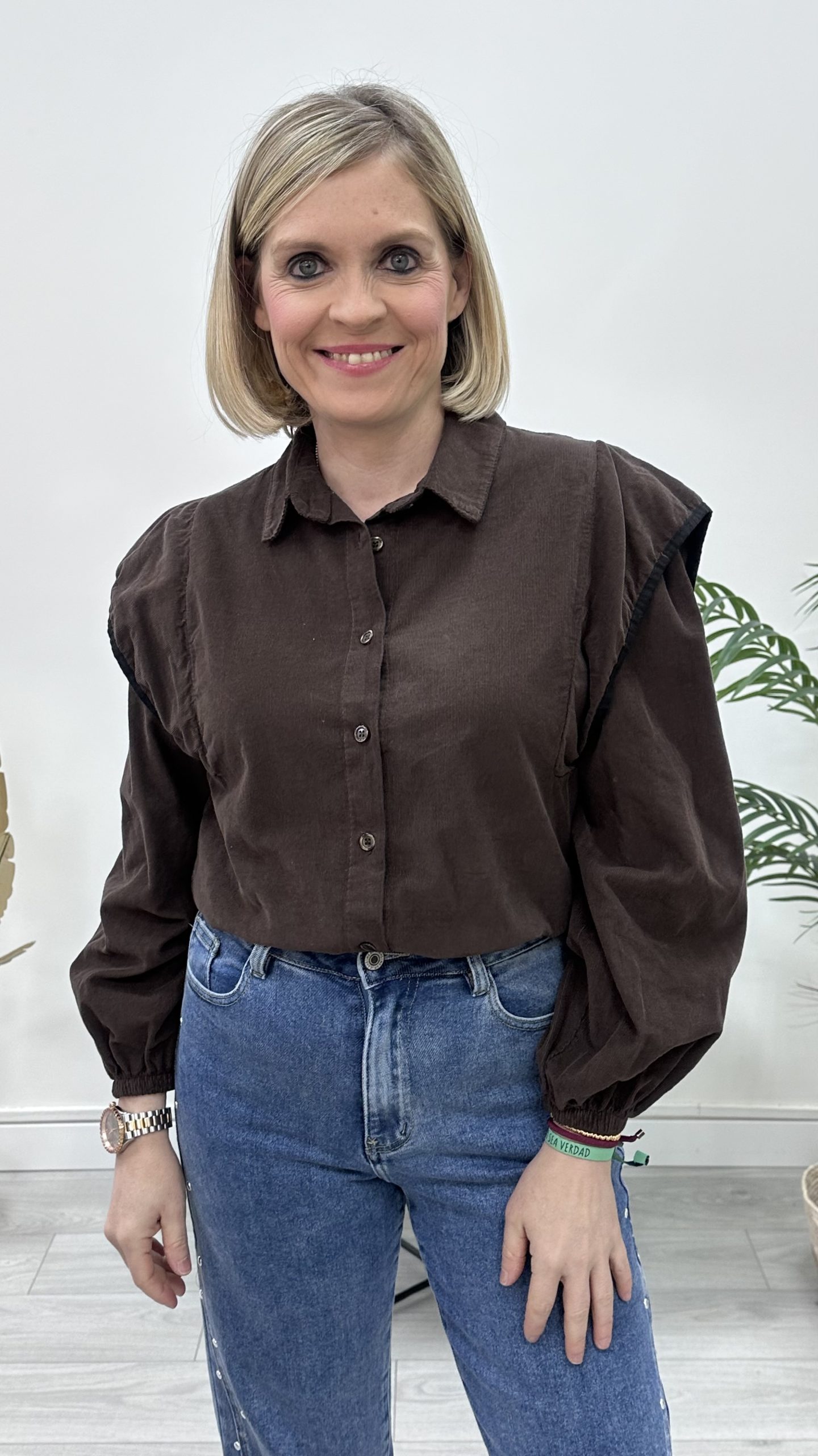 Camisa micropana detalle volantes en hombros con ribete contraste en negro