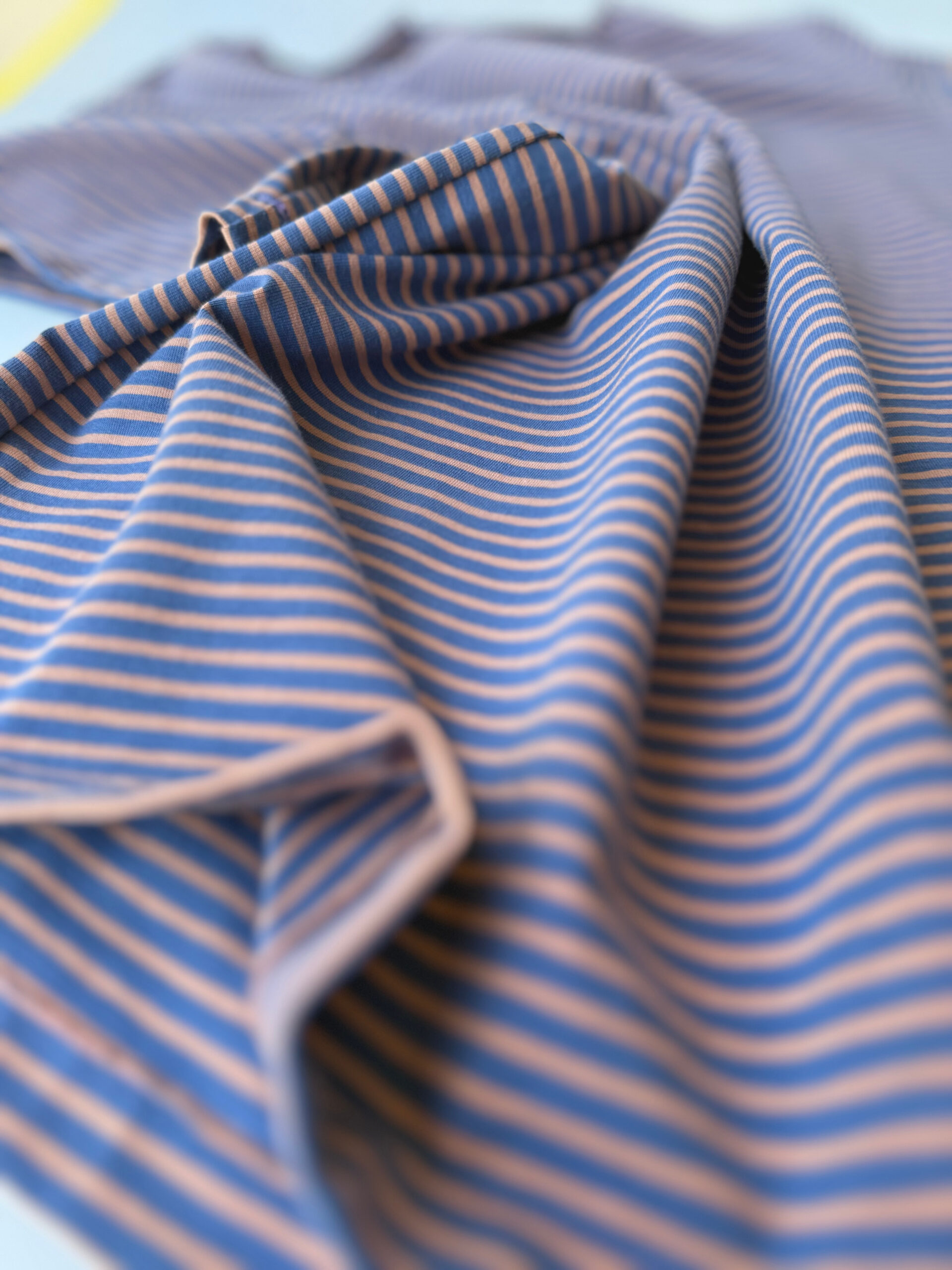 Fondo salmón con las rayas azules.