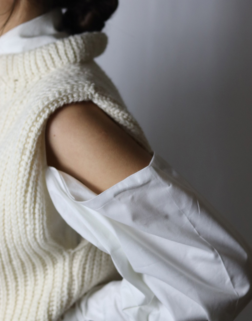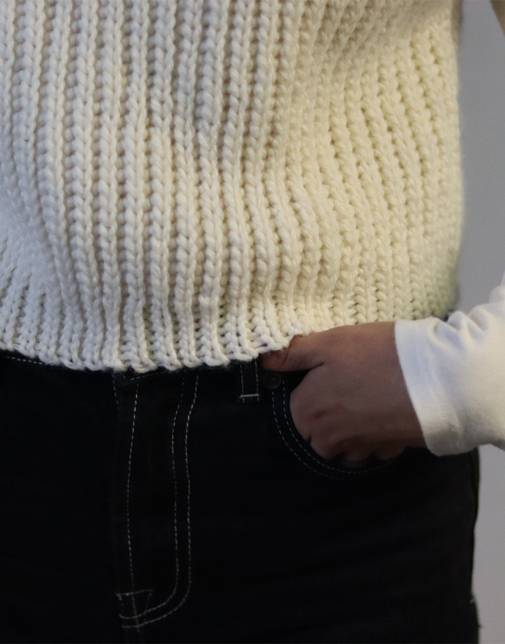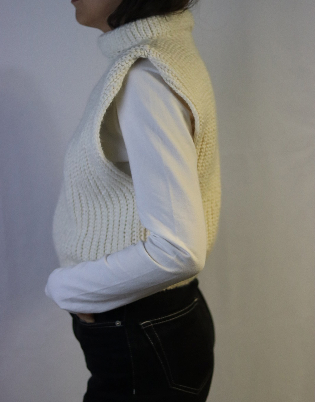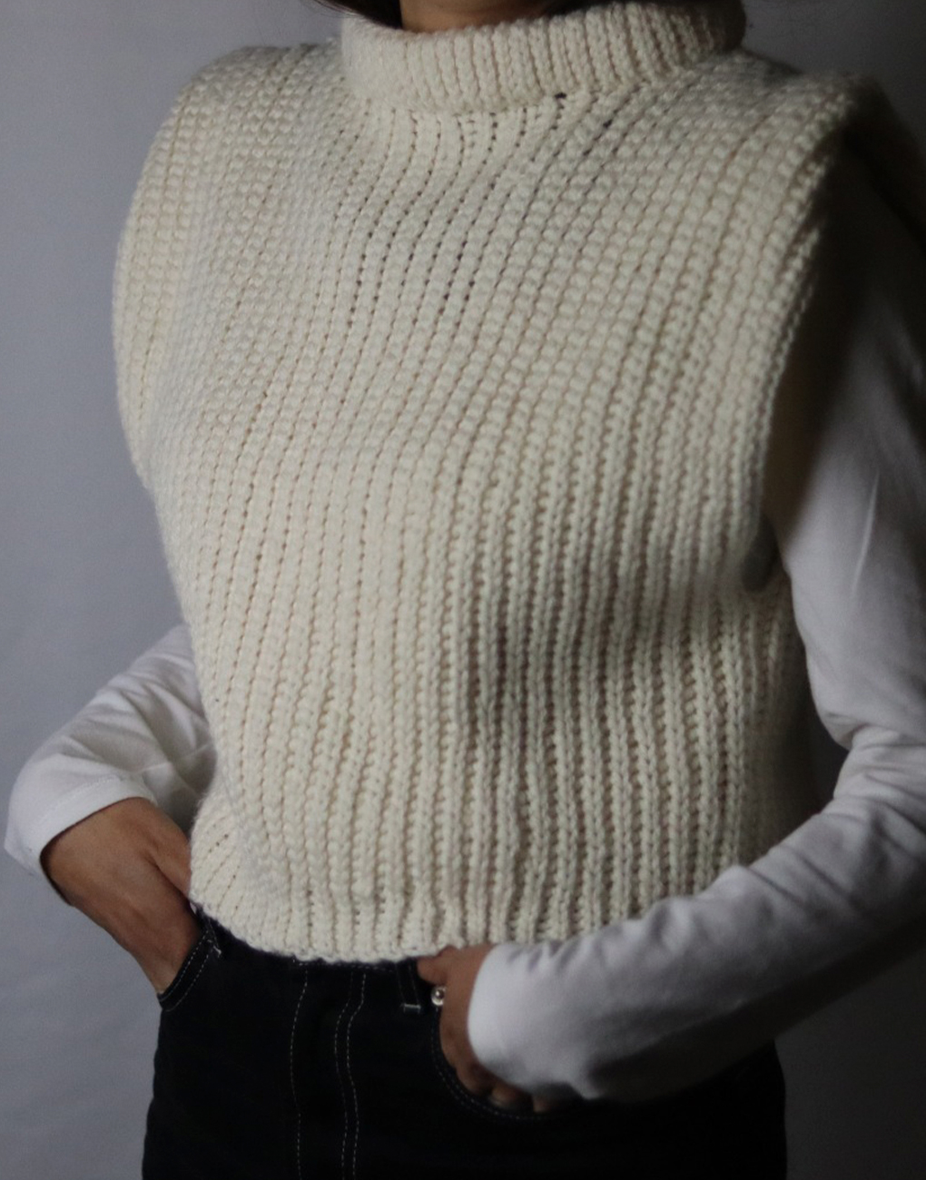 Chaleco MANILA, realizado a mano con la técnica a una aguja de crochet o ganchillo.
