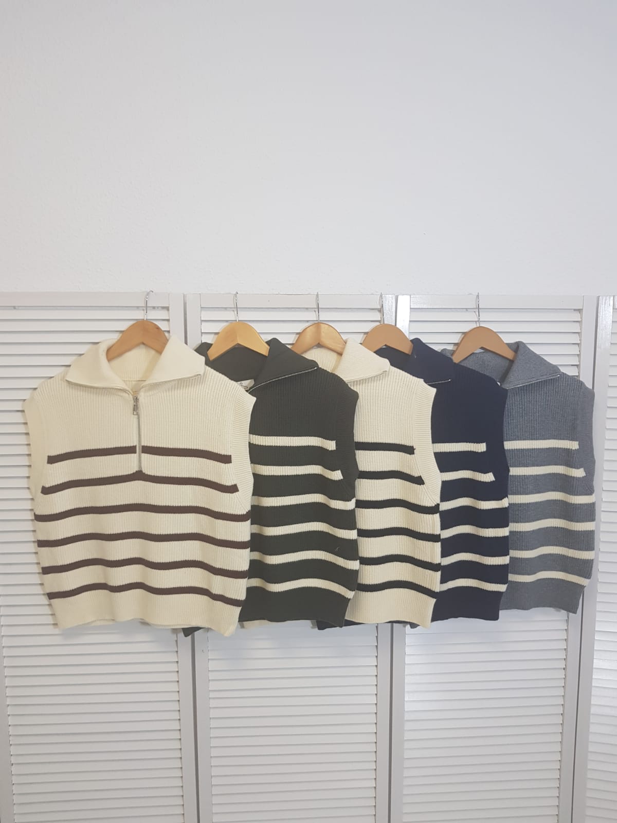 Chaleco de punto con cuello de cremallera.