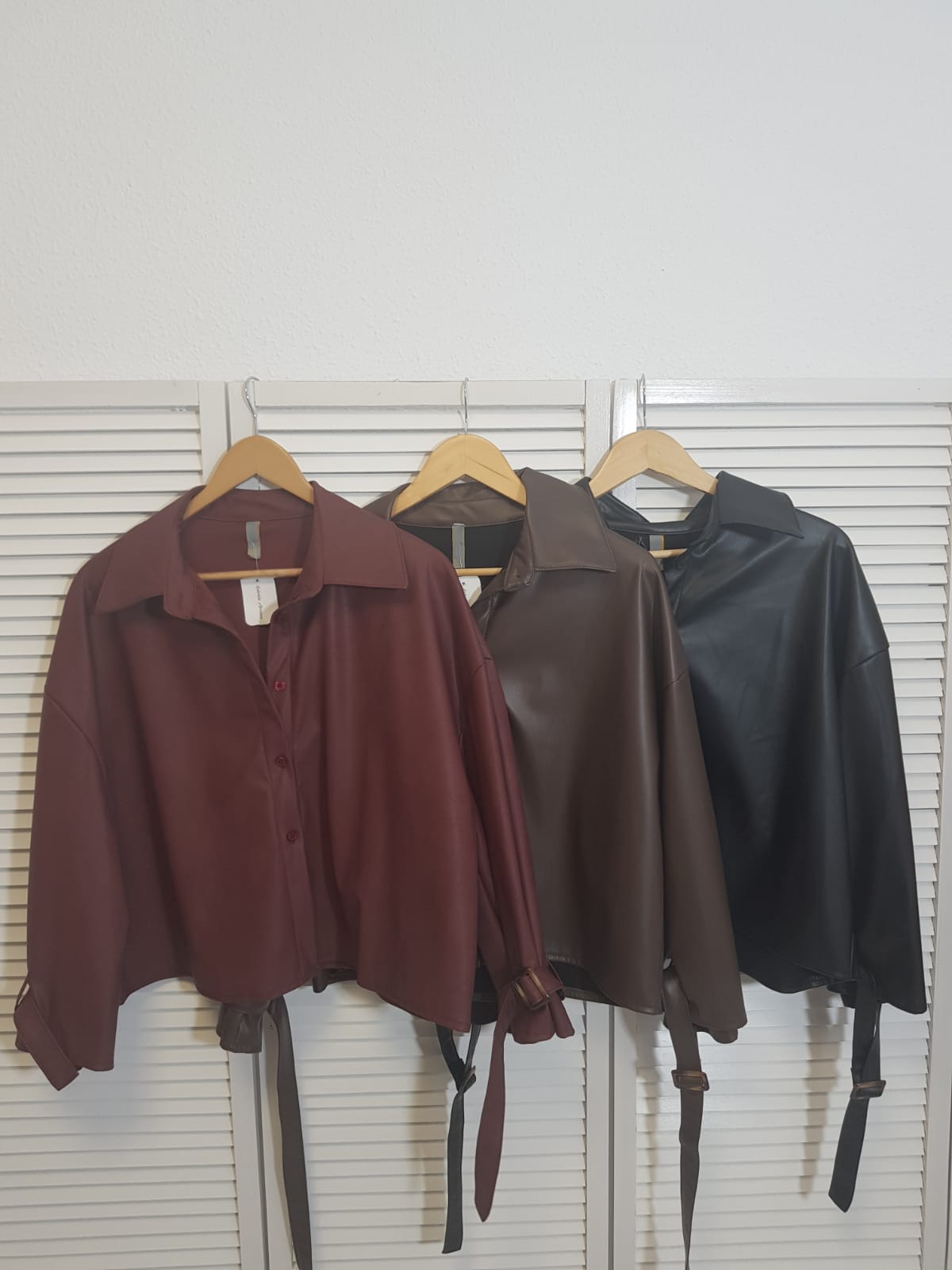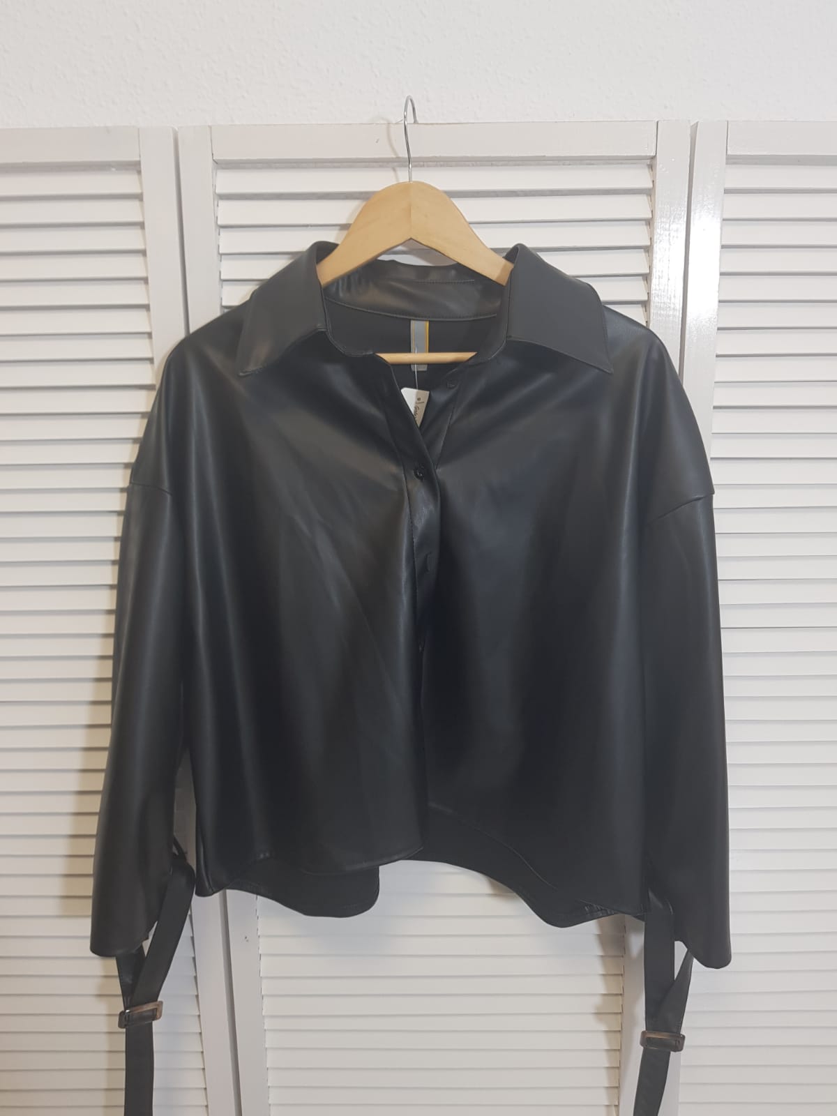 Chaqueta efecto piel con detalle de hebilla en los puños.