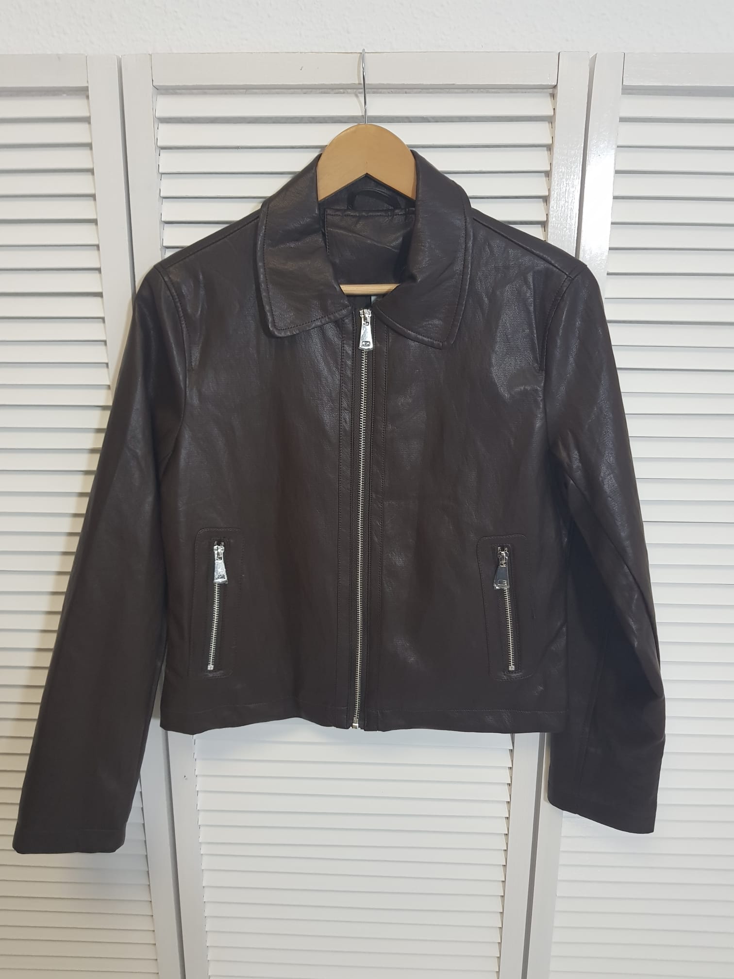 Chaqueta efecto piel marron.