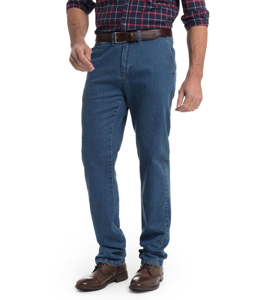 Pantalón tipo Chino en tejido Vaquero. Este modelo está realizado en tejido de 11 onzas, ideal para todo el año pero especialmente para invierno, y elástico para una mayor comodidad. El patrón es recto. Fabricado en España.