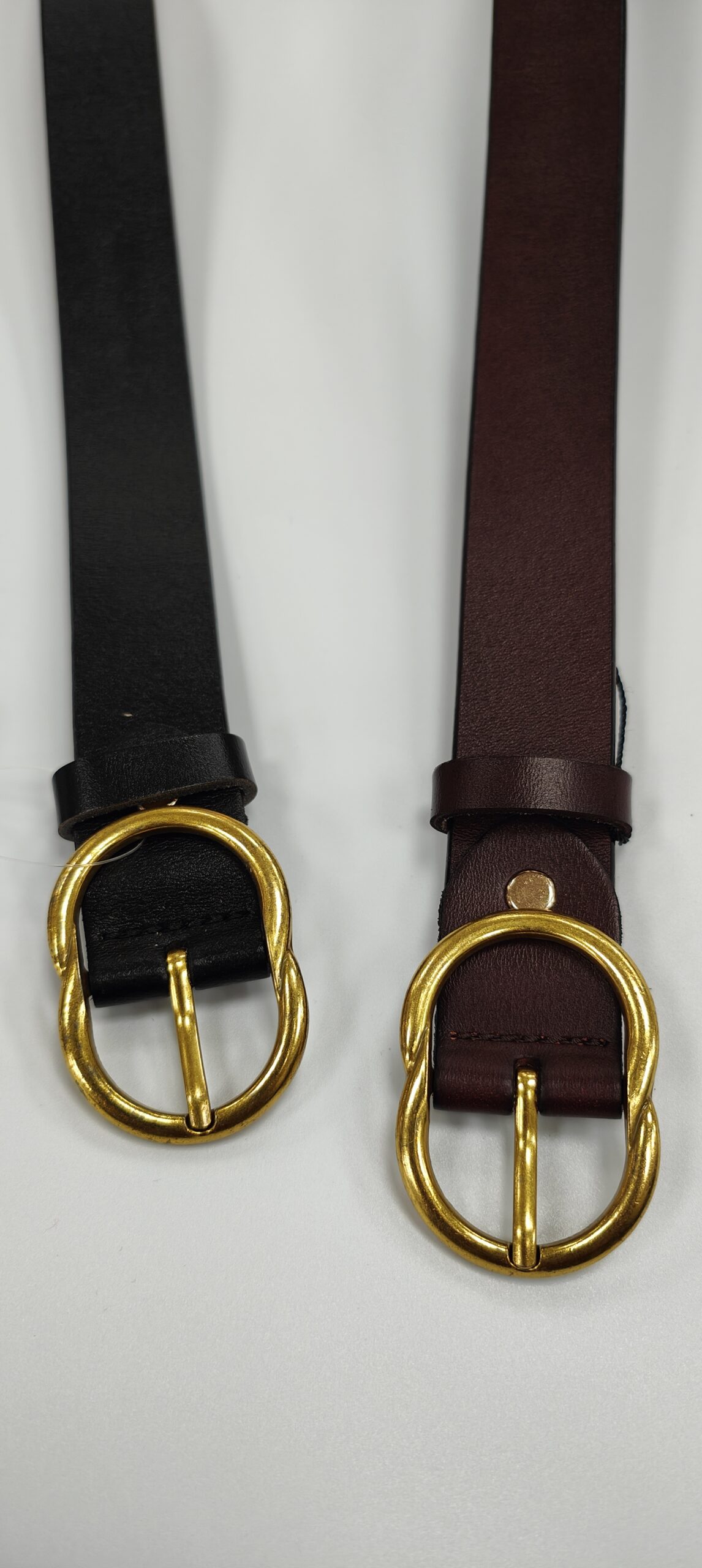 Cinturón de piel en color burdeos y negro. Medida 114cm
