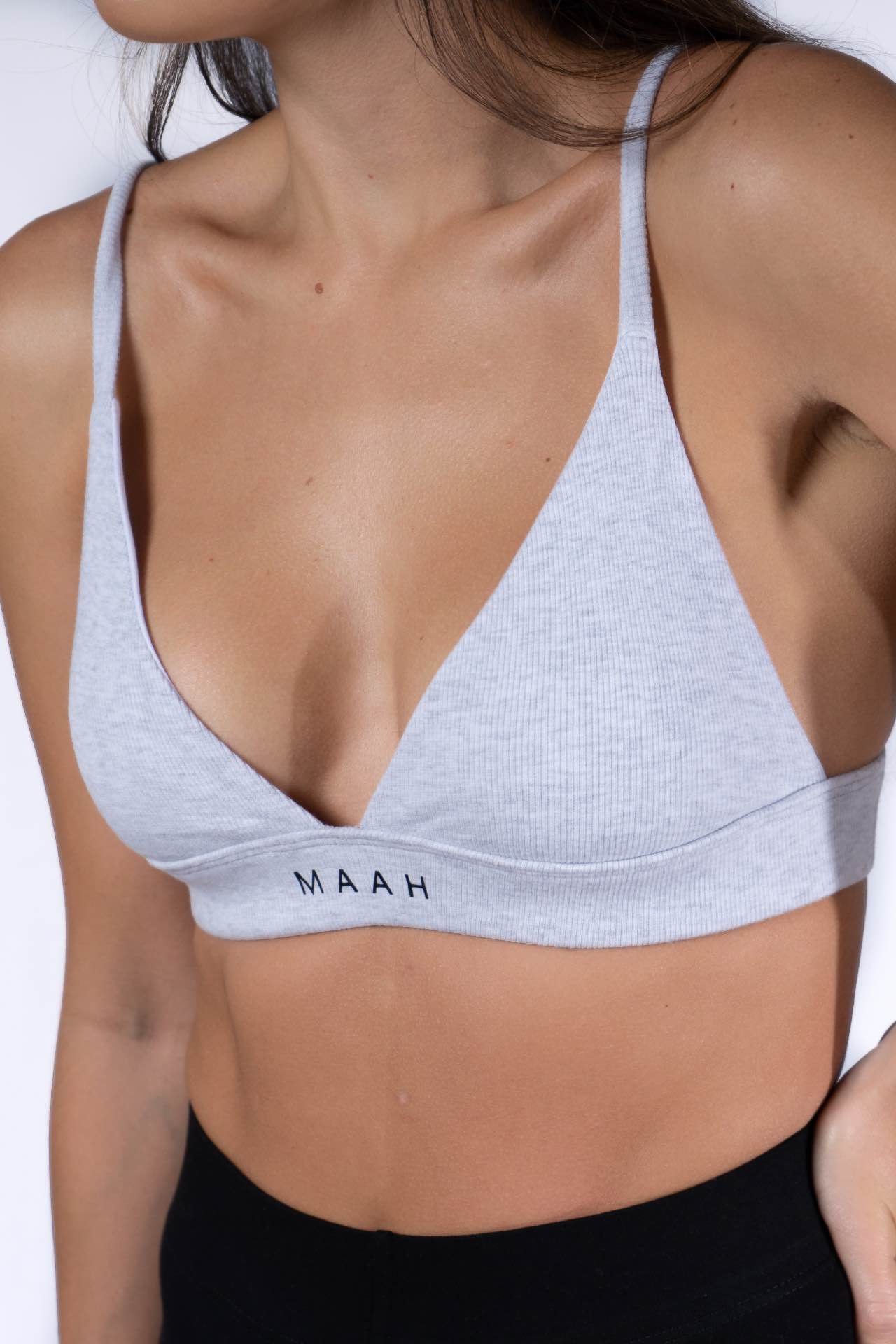 Top clásico de tiras en Rib licrado con forro en algodón. Sin copas, almohadillas ni varillas, solo comodidad.