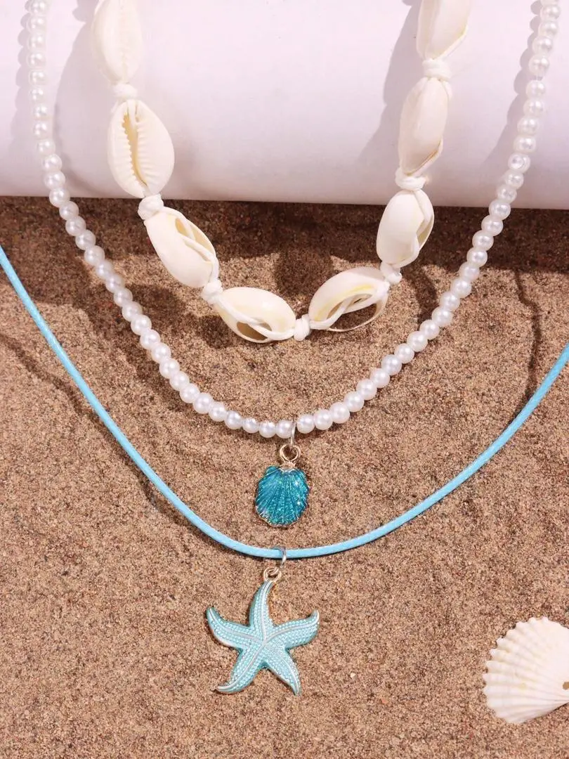 COLLARES DE CONCHAS Y ESTRELLA DE MAR AZUL