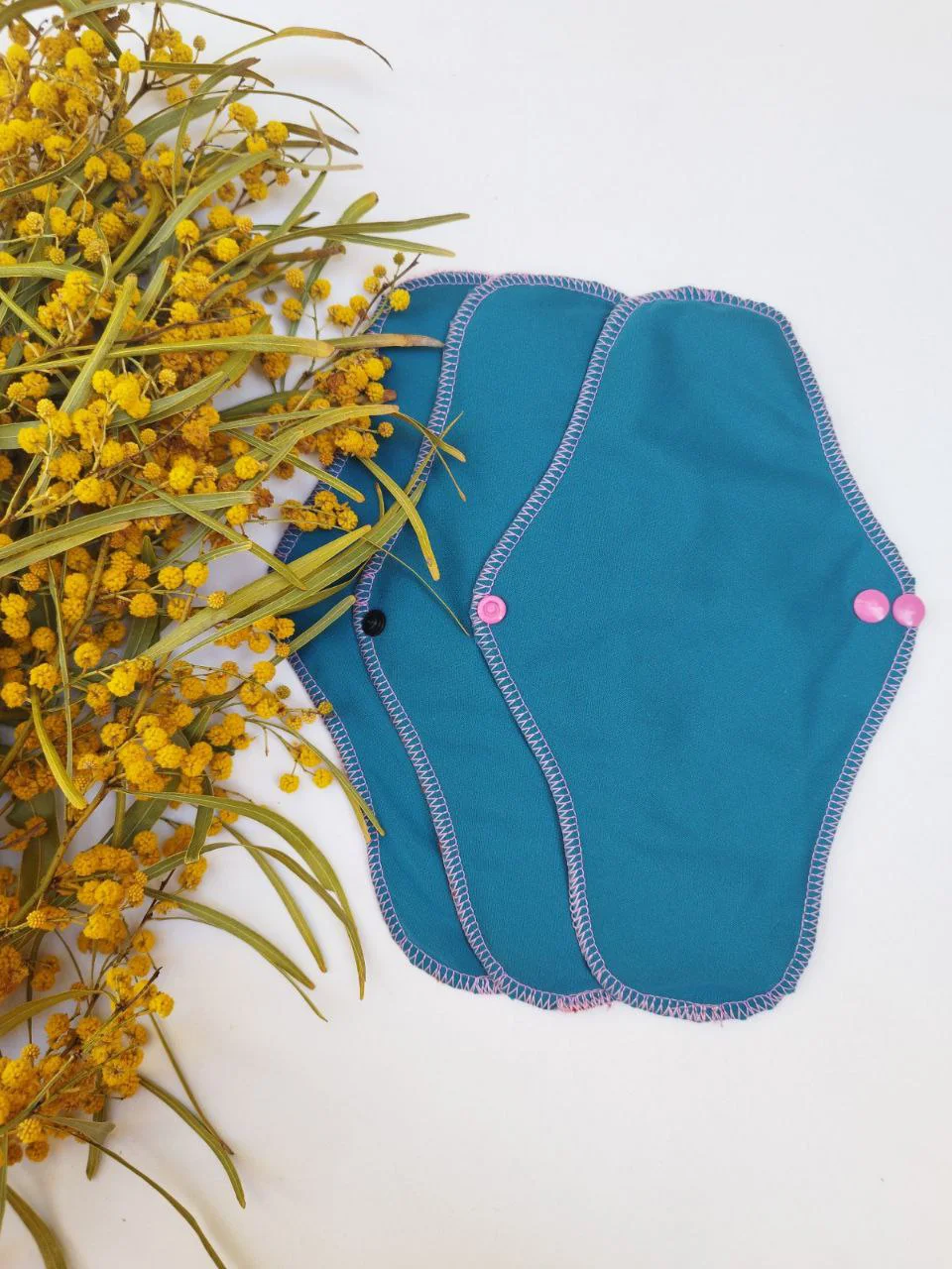 Tamaño ideal para la noche y el postparto. Doble snap para un mejor ajuste. Miden unos 30cm de largo.