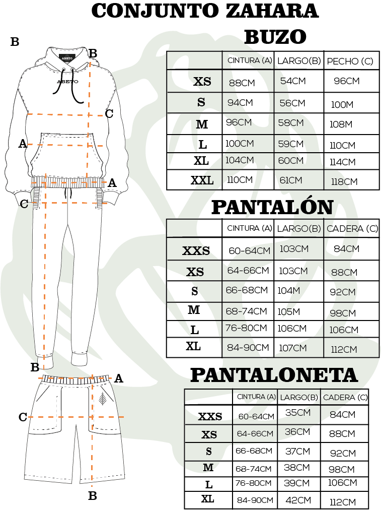 Conjunto deportivo mujer de tres piezas; tela burda 65% poli y 35% algodón con estampación en pantalón, buzo y pantaloneta; buzo con capota; puños y pretina en RIB; cierre de pantalón con cordón; marquilla, talla, bandera y etiqueta 100% eco.