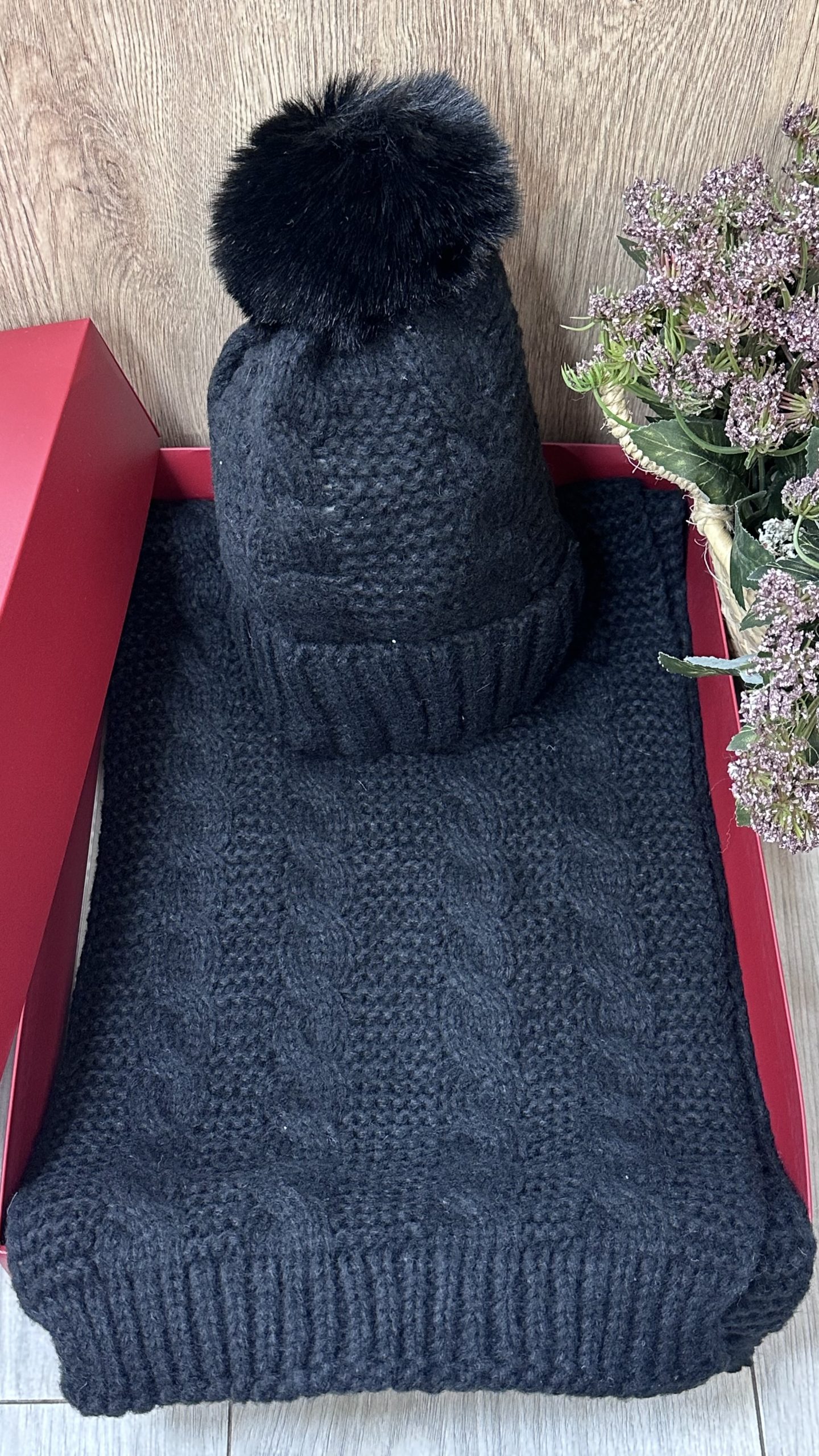 Conjunto gorro con pompom y forro polar en interior más bufanda