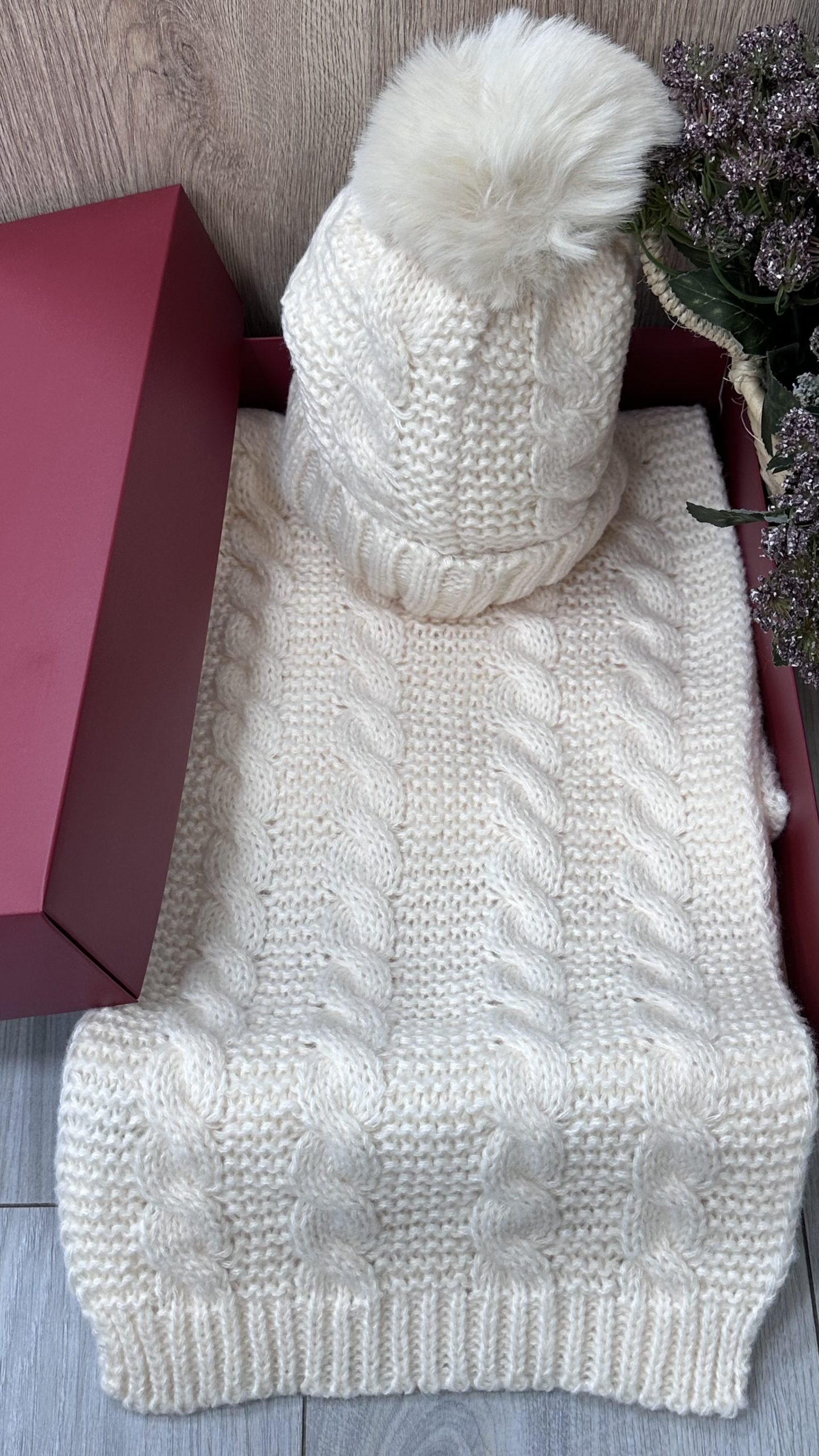 Conjunto gorro con pompom y forro polar en interior más bufanda