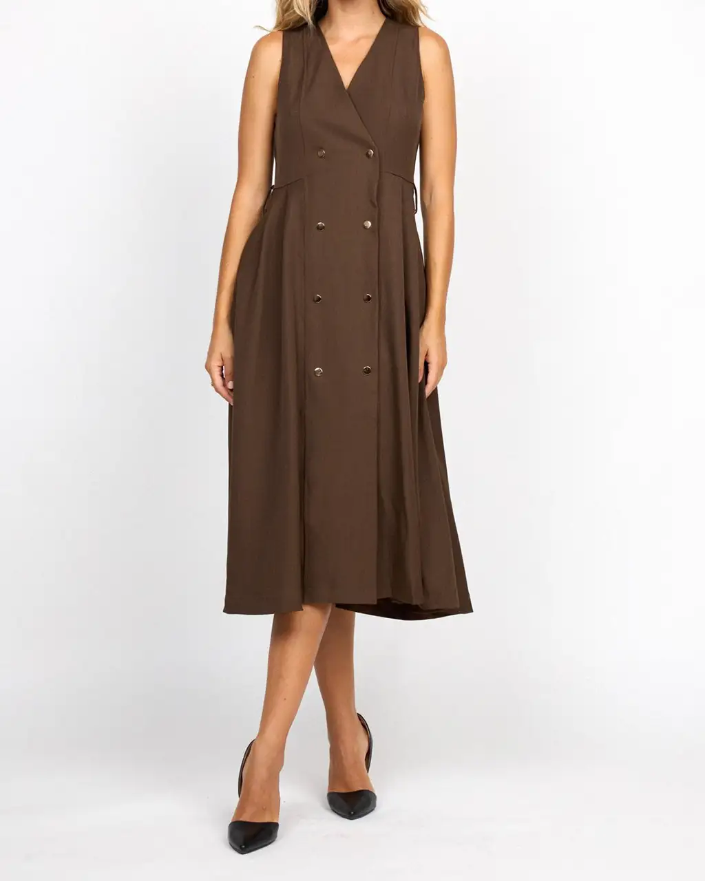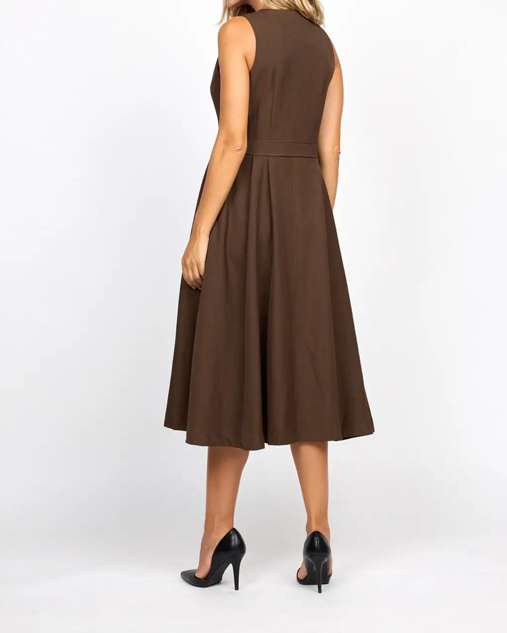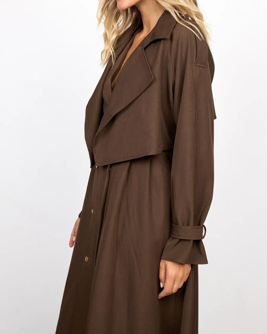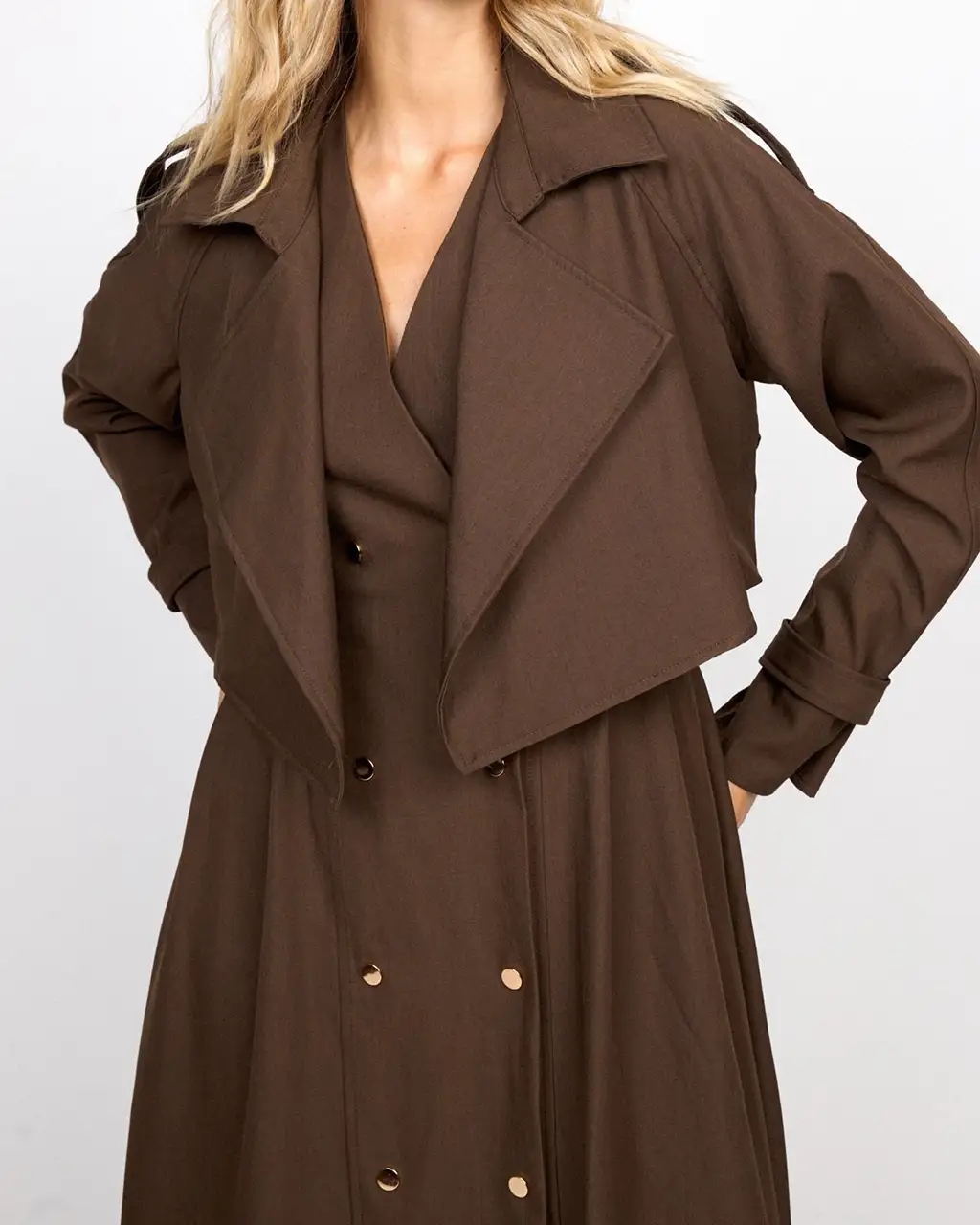 Conjunto de vestido y chaqueta tipo gabardina en color marrón chocolate. Un conjunto perfecto para otoño invierno.
