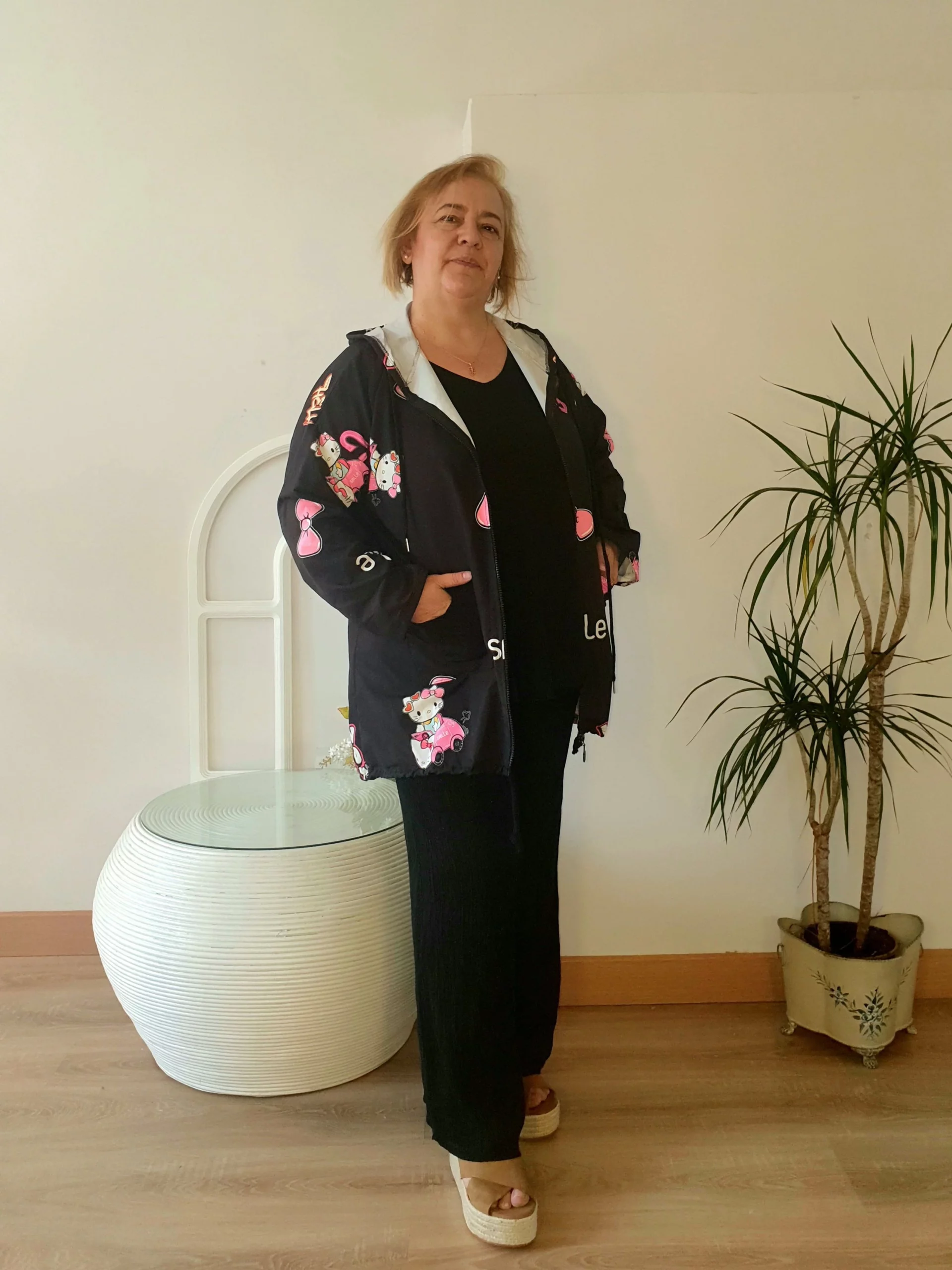 Cortavientos estampado, con bolsillos y cierre cremallera.