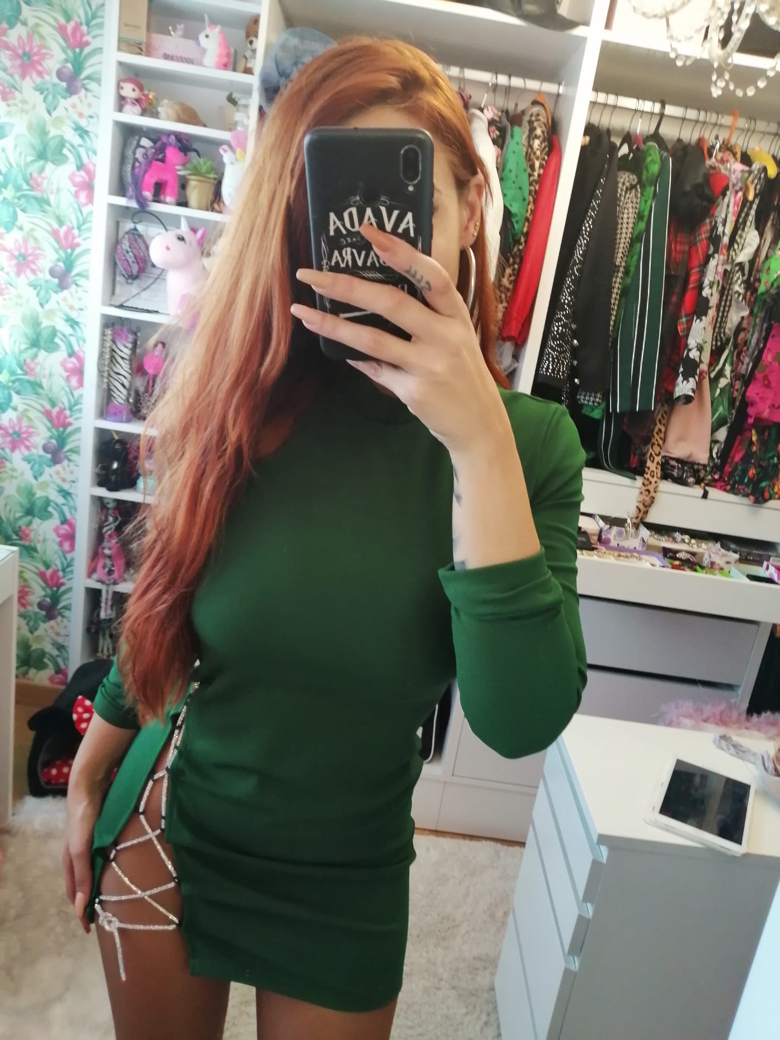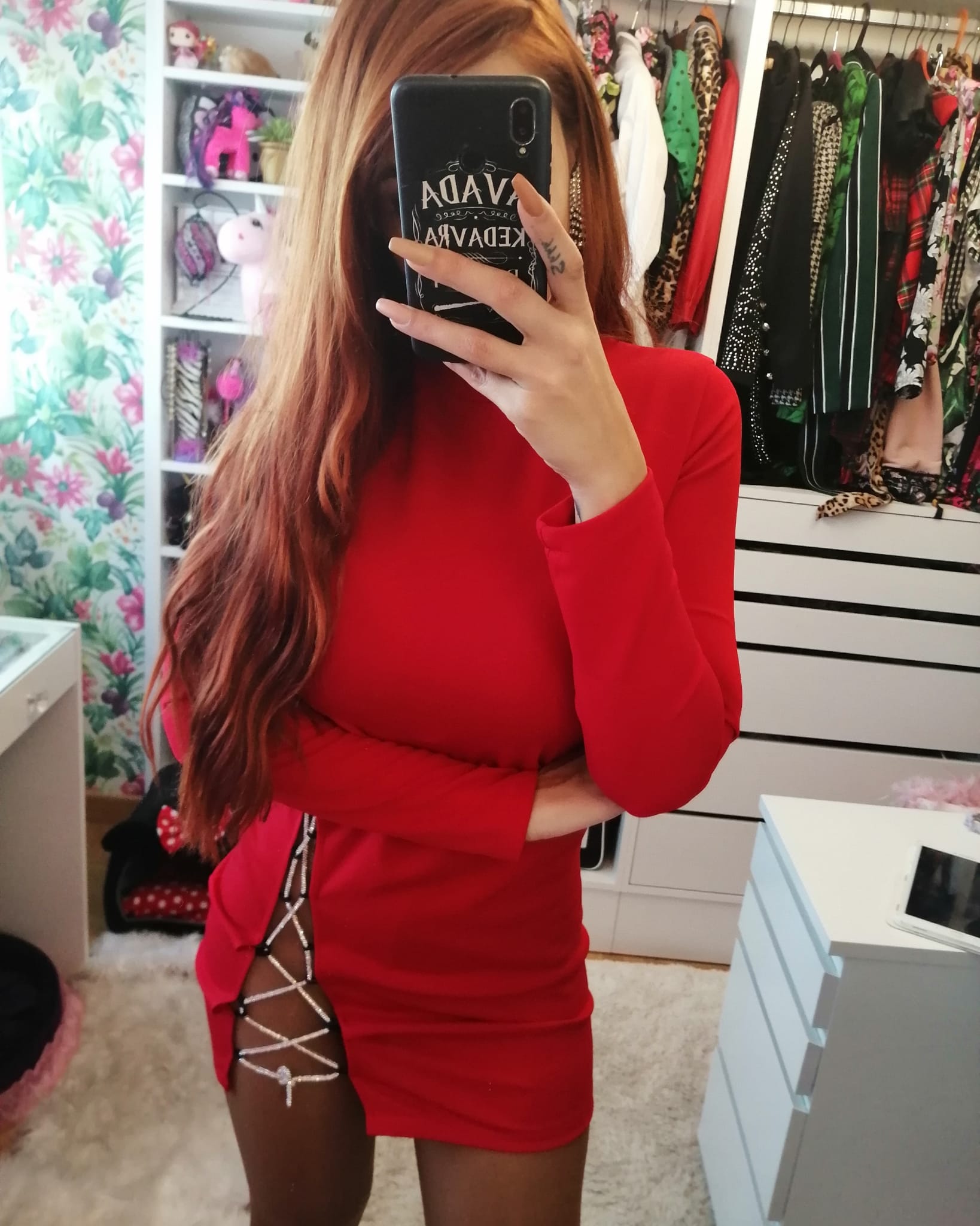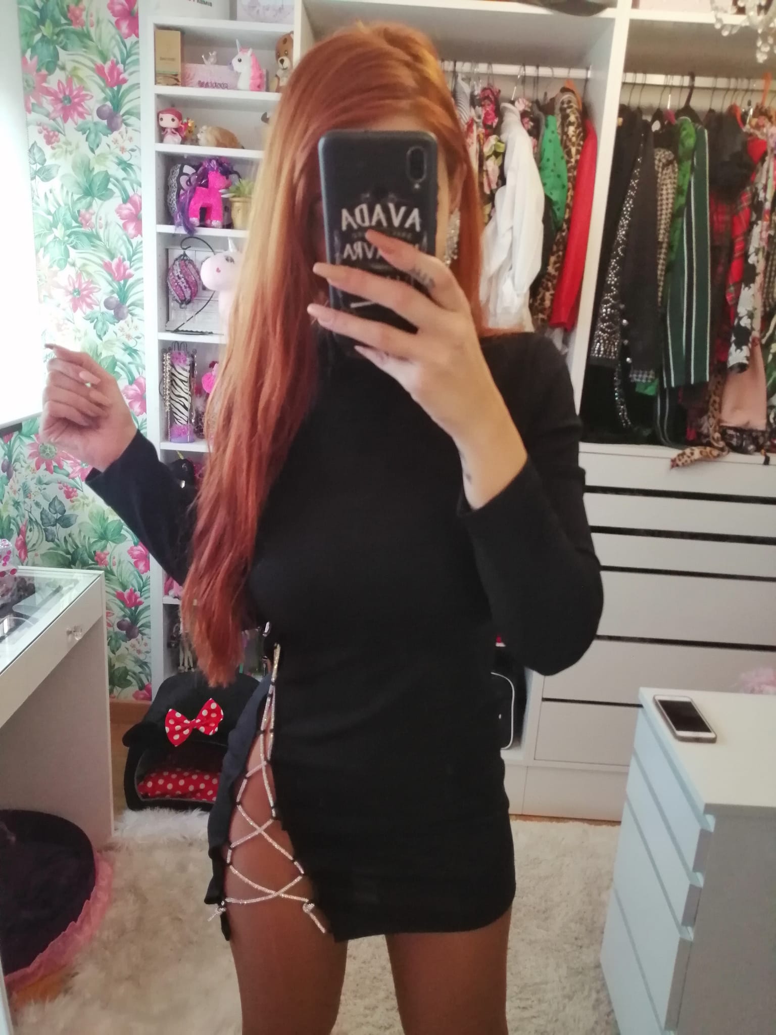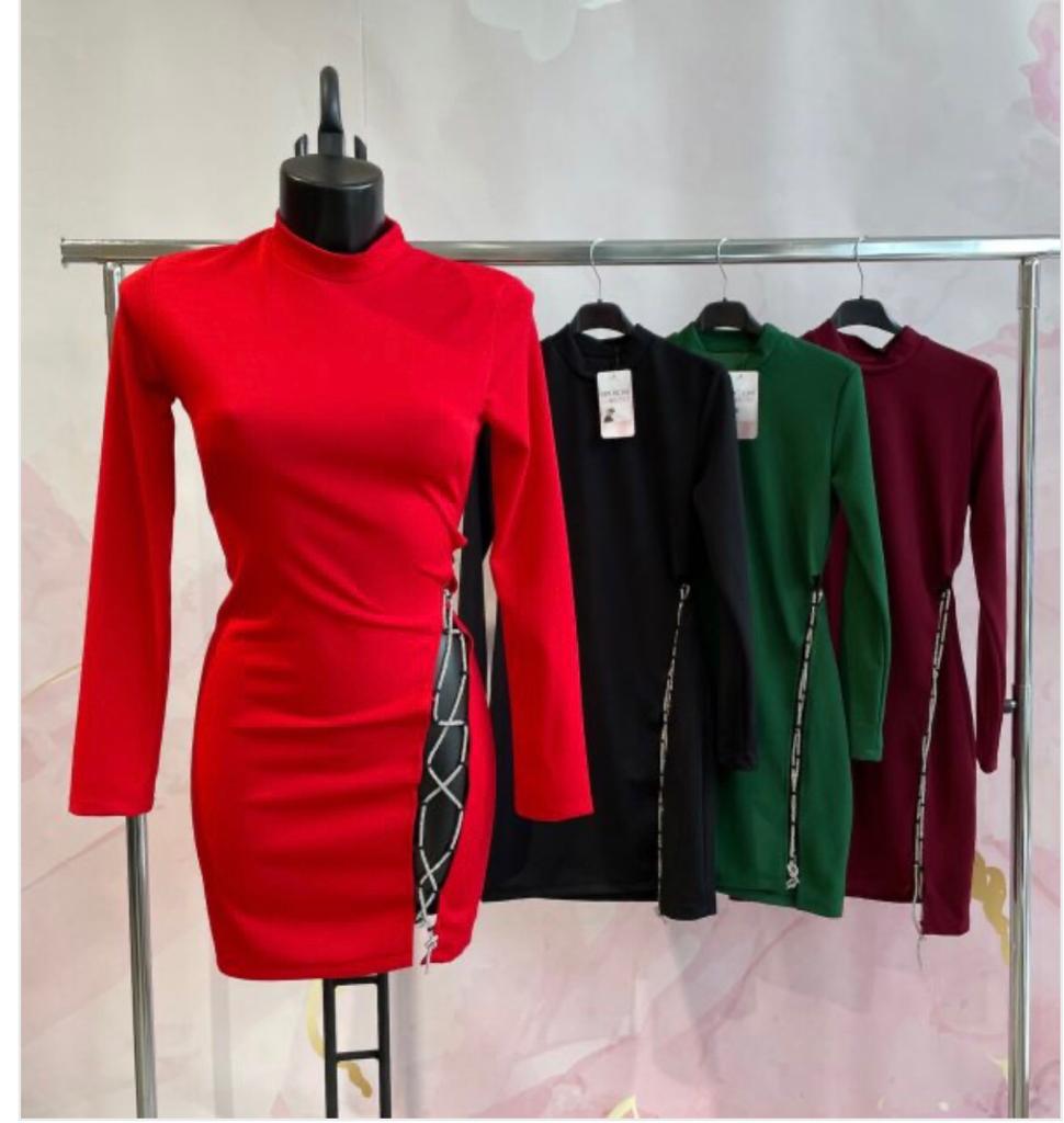 Vestido  elástico con abertura lateral con cuerda de brillantes regulable.