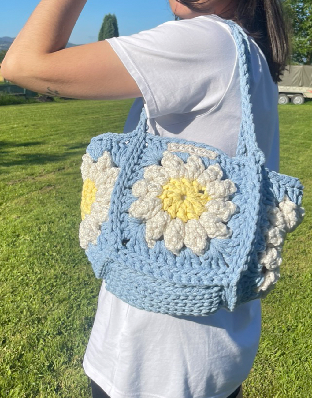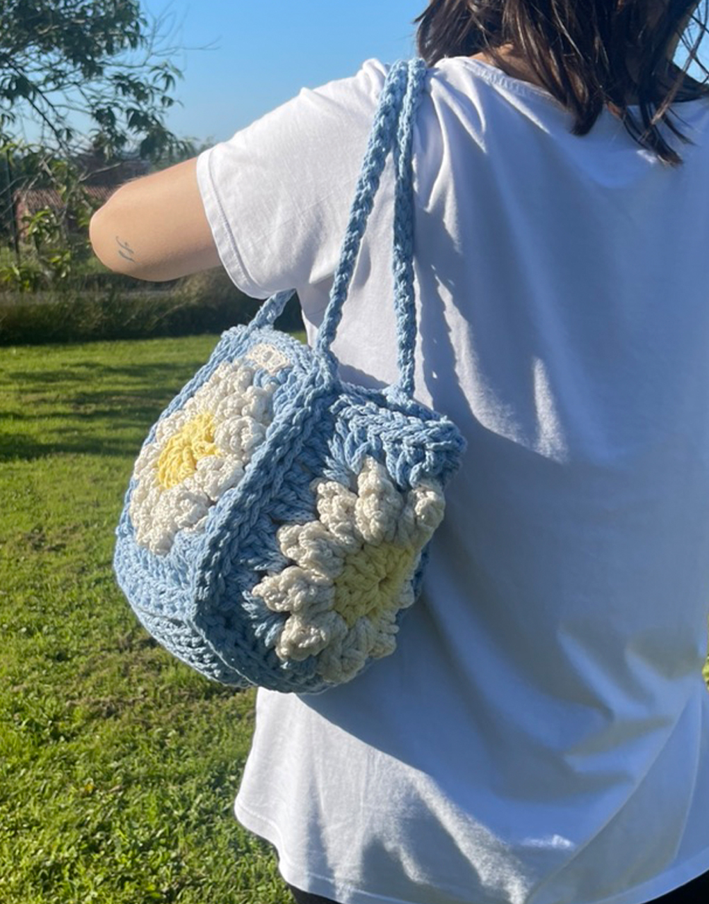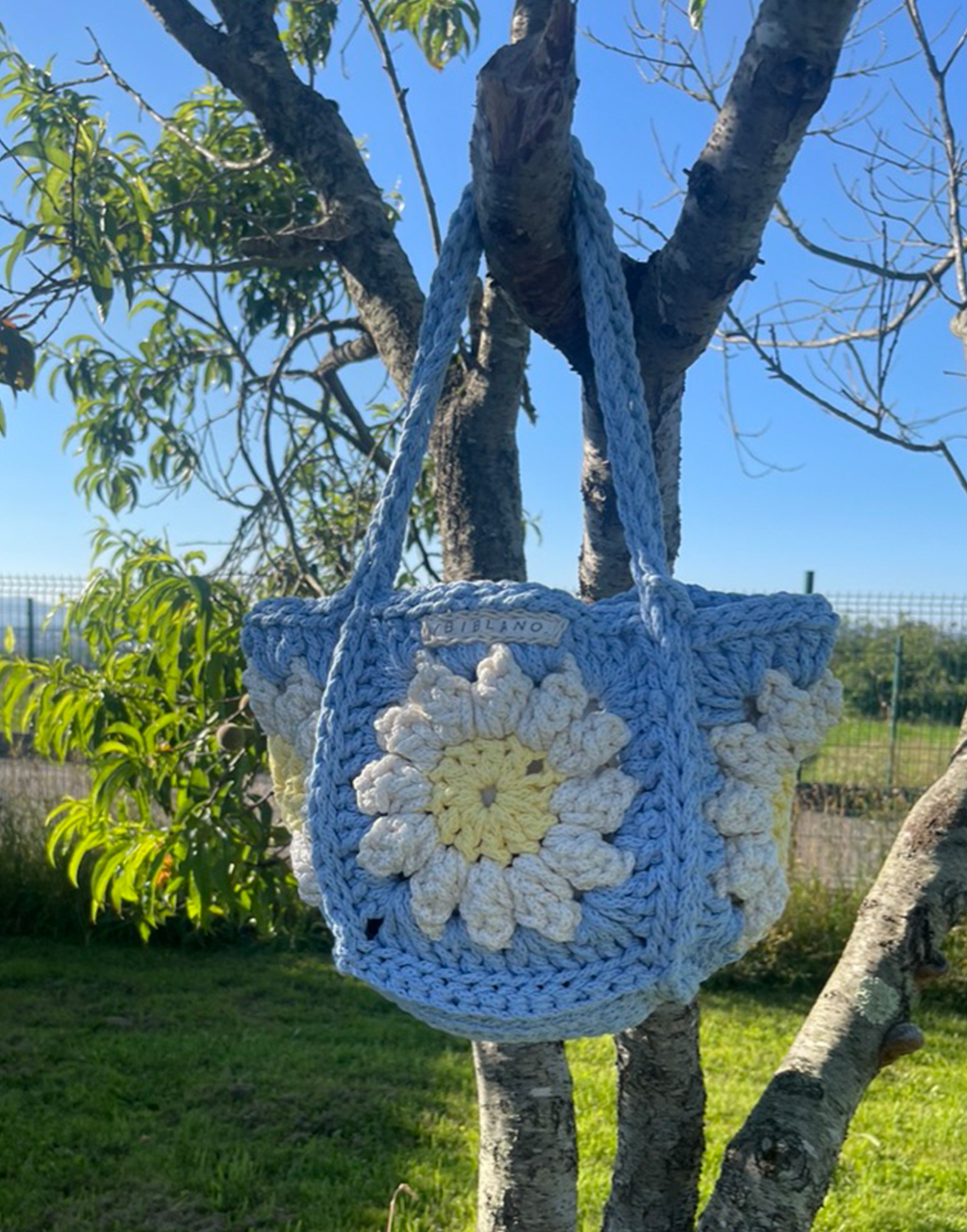 Crochet bag KALMA Cada pieza está hecha a mano, Desde talleres locales en Asturias de la manera más sostenible y ética posible.
