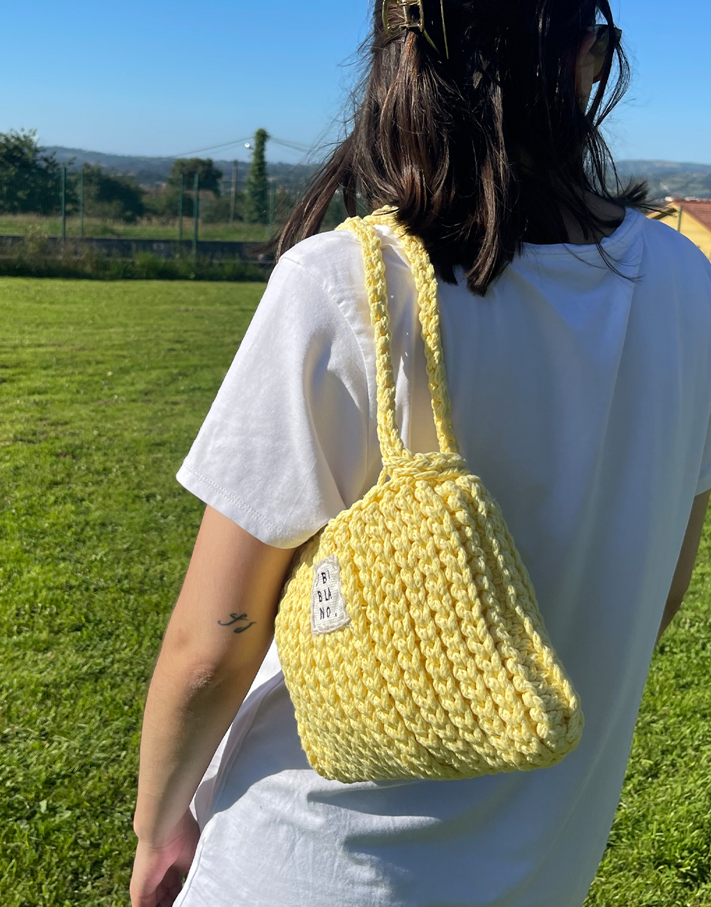 El bolso Crochet bag SENSE está realizado a ganchillo con fibra de algodón 100% reciclado. Todo realizado a mano desde Asturias.