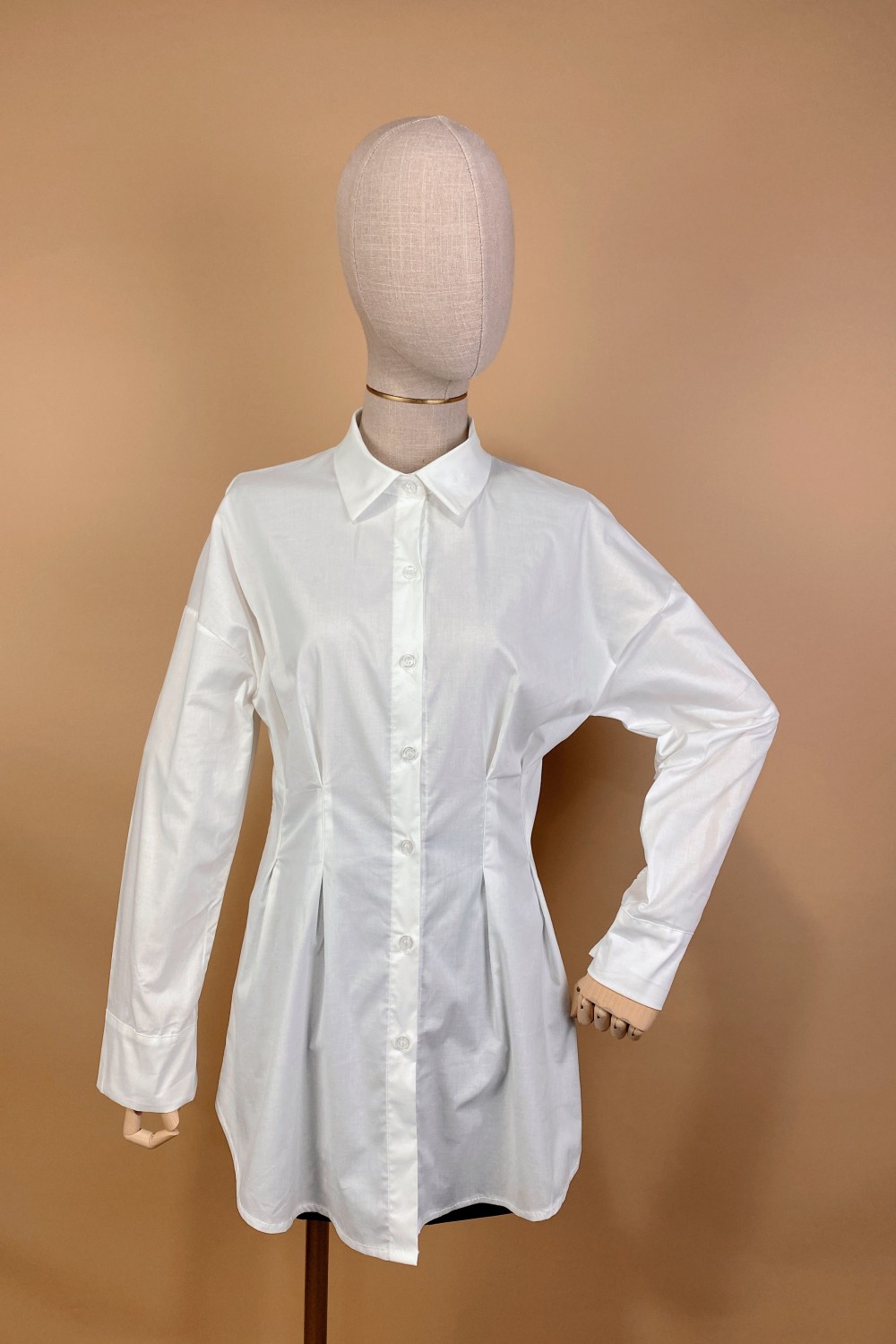 Camisa Algodón Pinzas Cintura Larga Pinzas