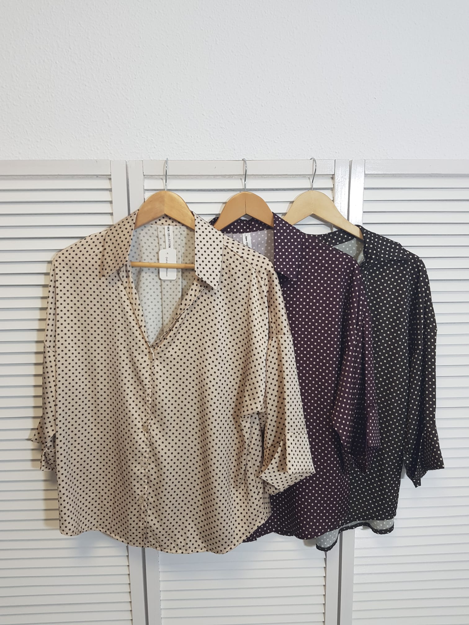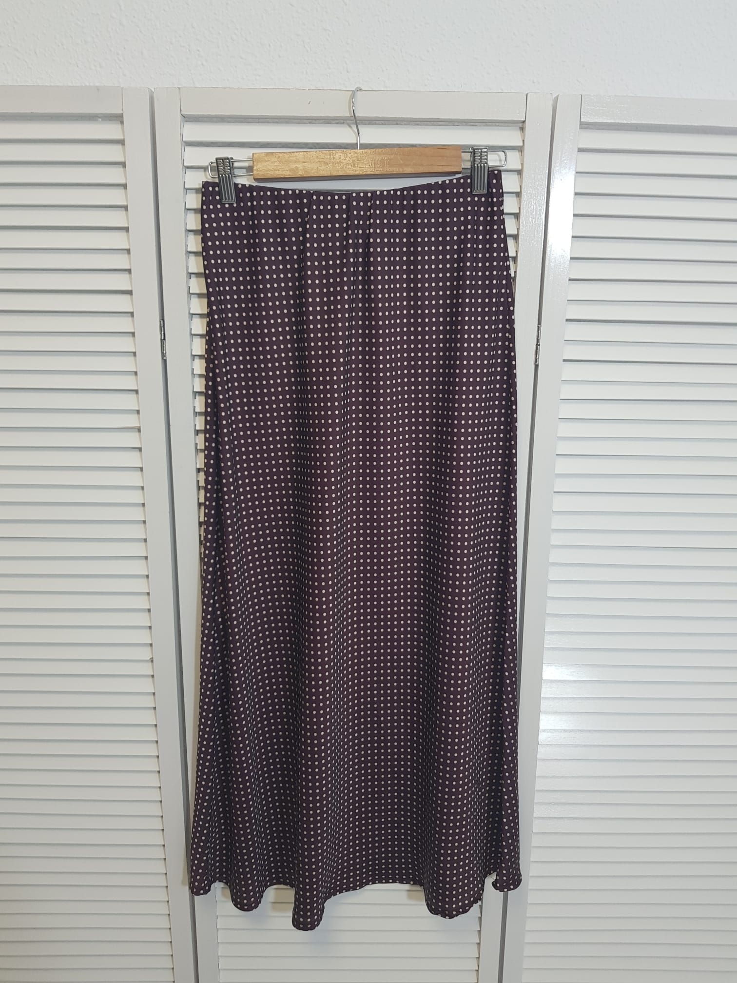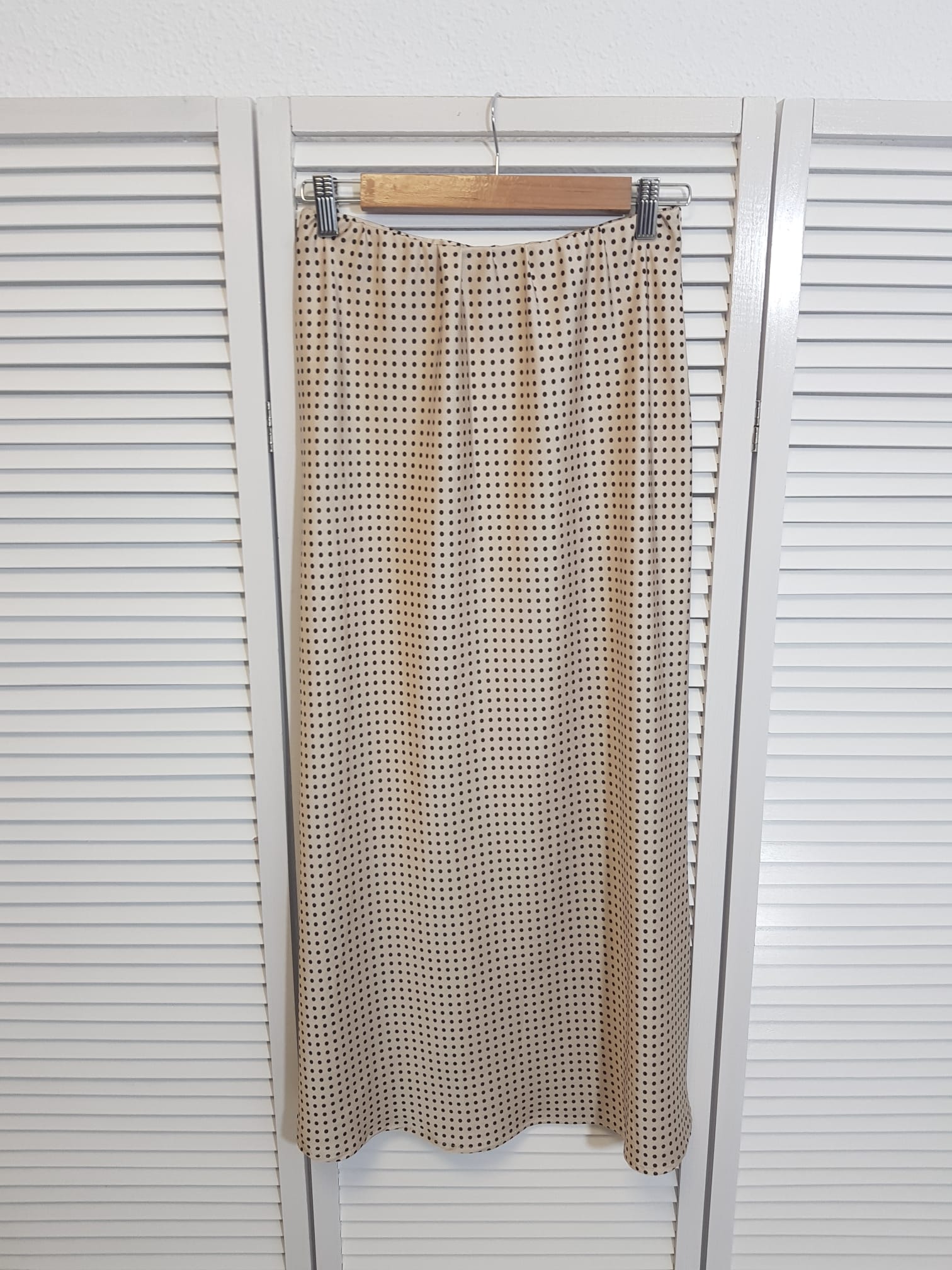 Falda tipo raso de lunares, cintura engomada. Hace conjunto con la camisa Carolina.