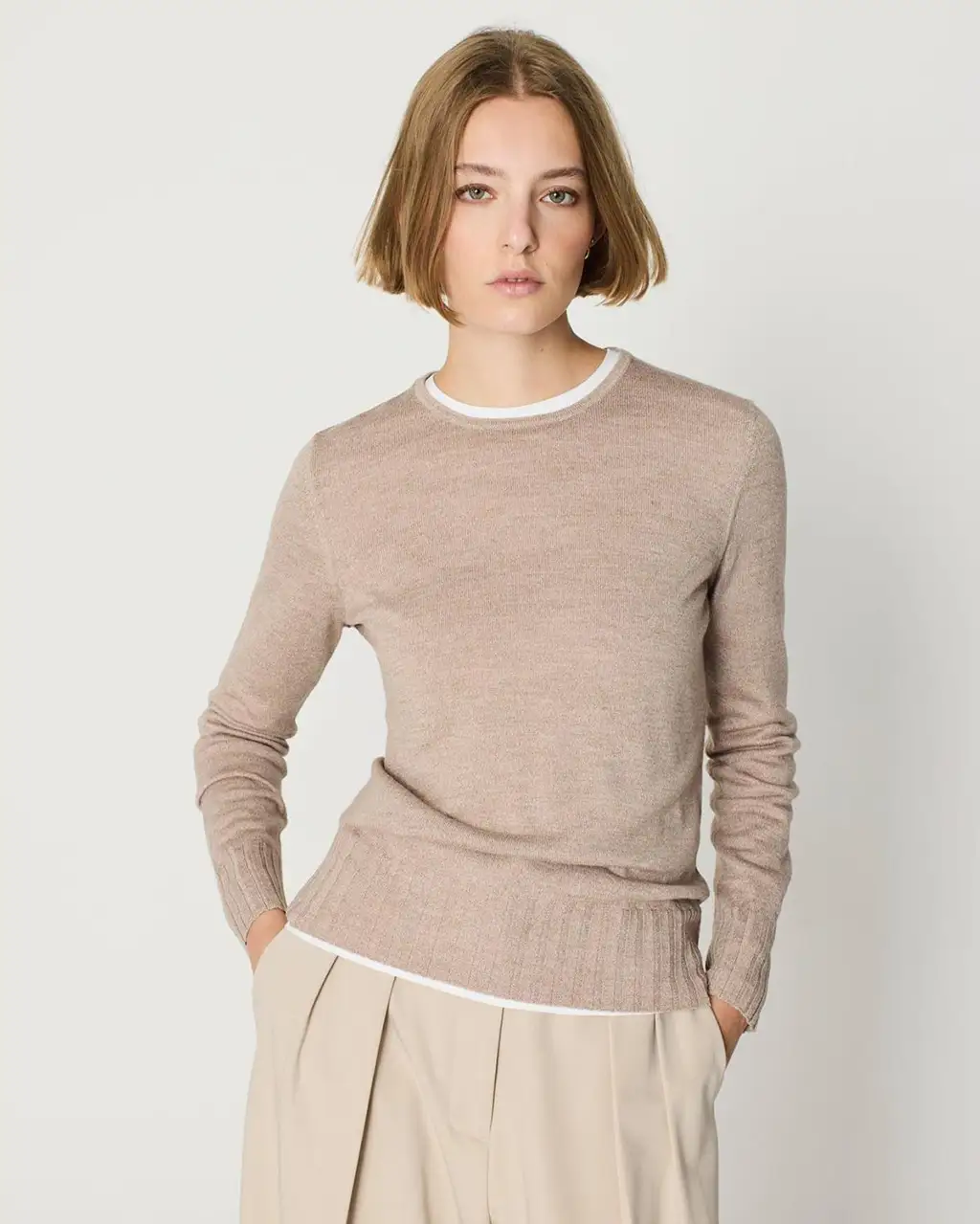 Jersey de Canalé ancho en puños y cinturas con cuello caja confeccionado en color visón jaspeado marca ESCORPIÓN. Disponible en diferentes tallas.
