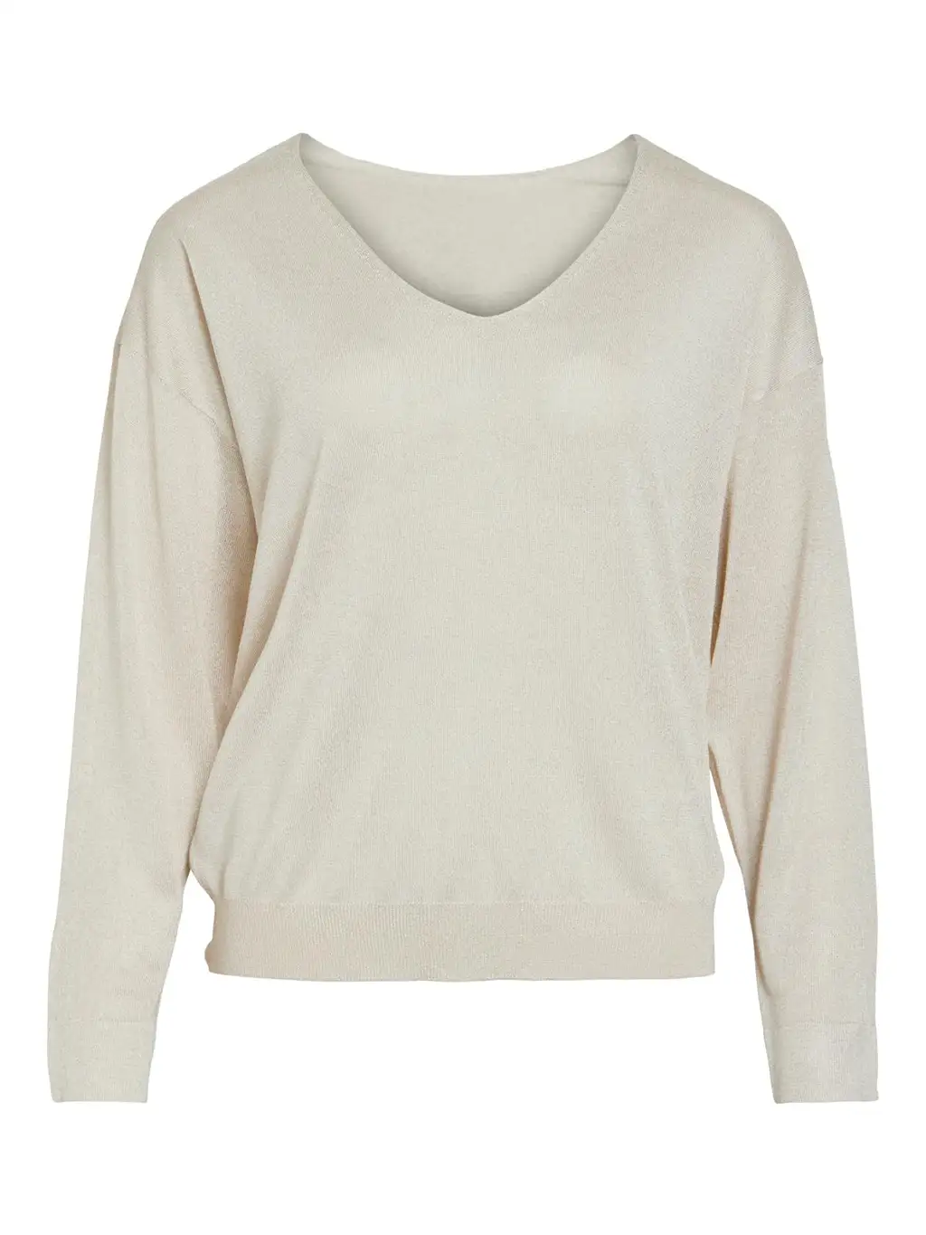 Jersey punto fino Vila en color crudo, con cuello amplio en pico, disponible en diferentes tallas.