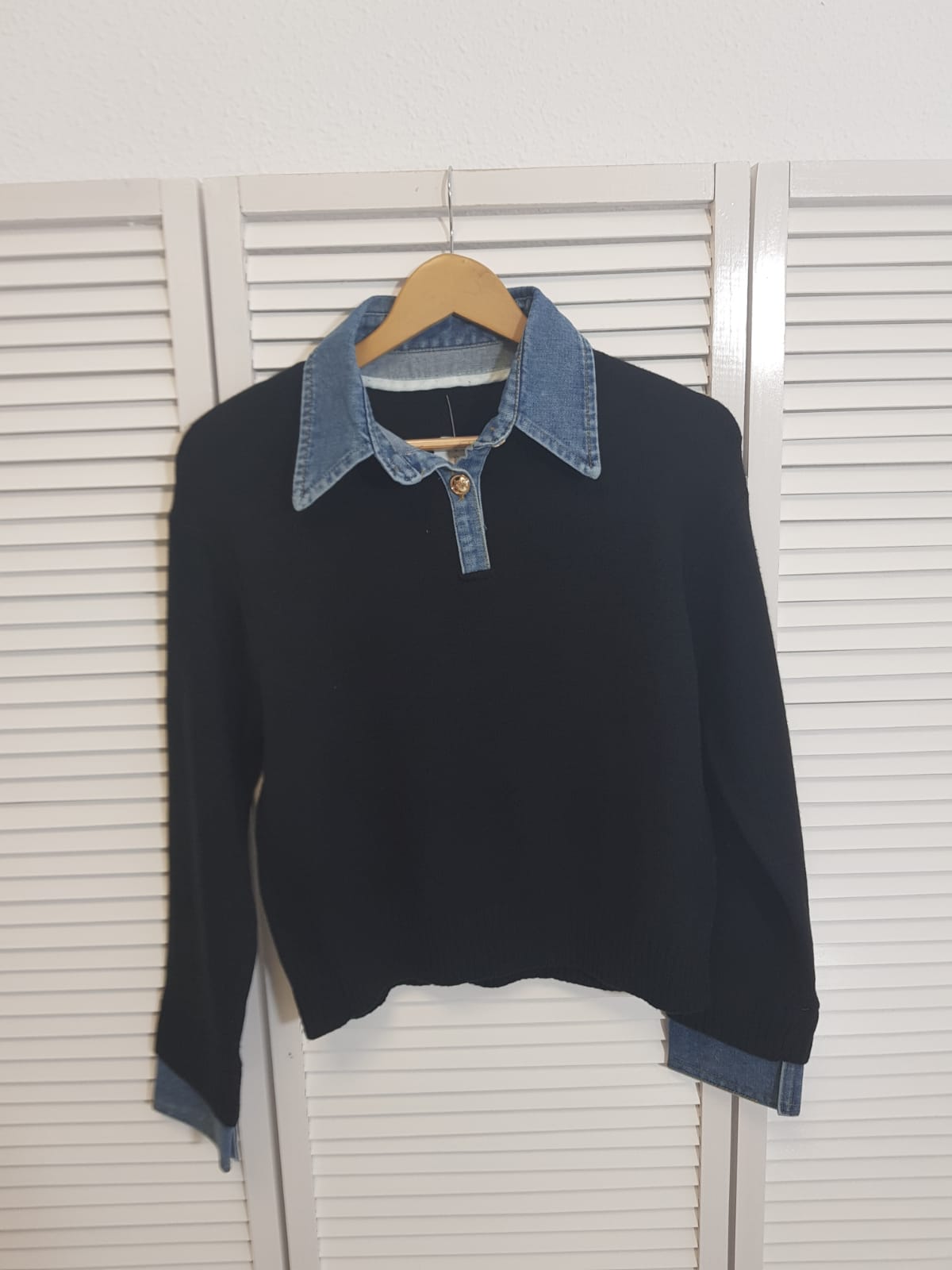 Jersey de cuello polo, Cuello y puños de tela vaquera.