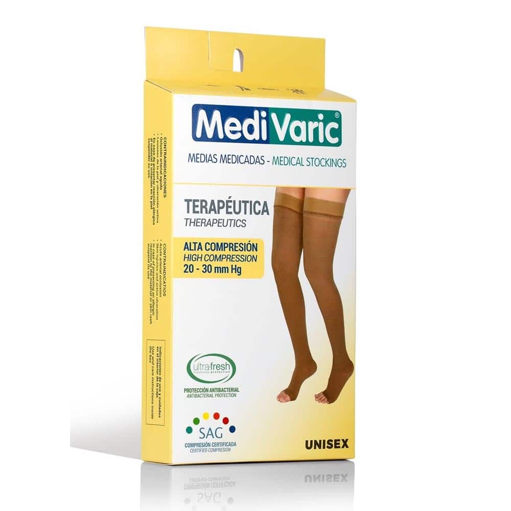 Estas medias muslo de compresión han sido diseñadas para ofrecer soporte terapéutico, comodidad y ajuste perfecto. Su compresión graduada decreciente favorece el retorno venoso, ayudando a reducir la fatiga y prevenir molestias circulatorias.