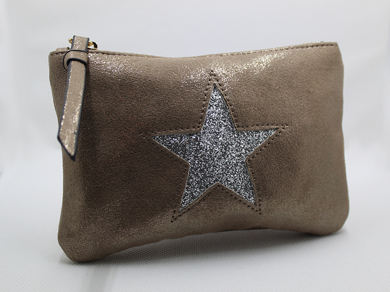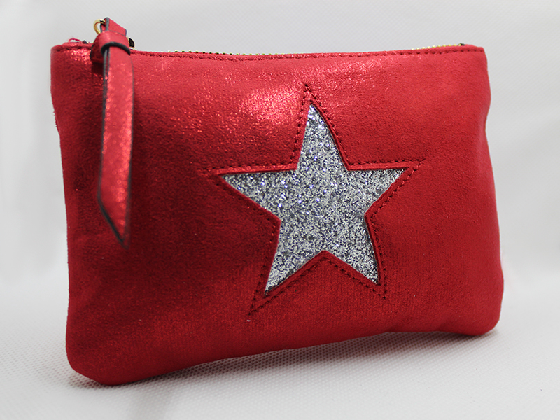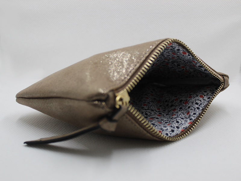 Mini bolso tipo estuche con cremallera ideal para guardar mascarilla con estampado interior.