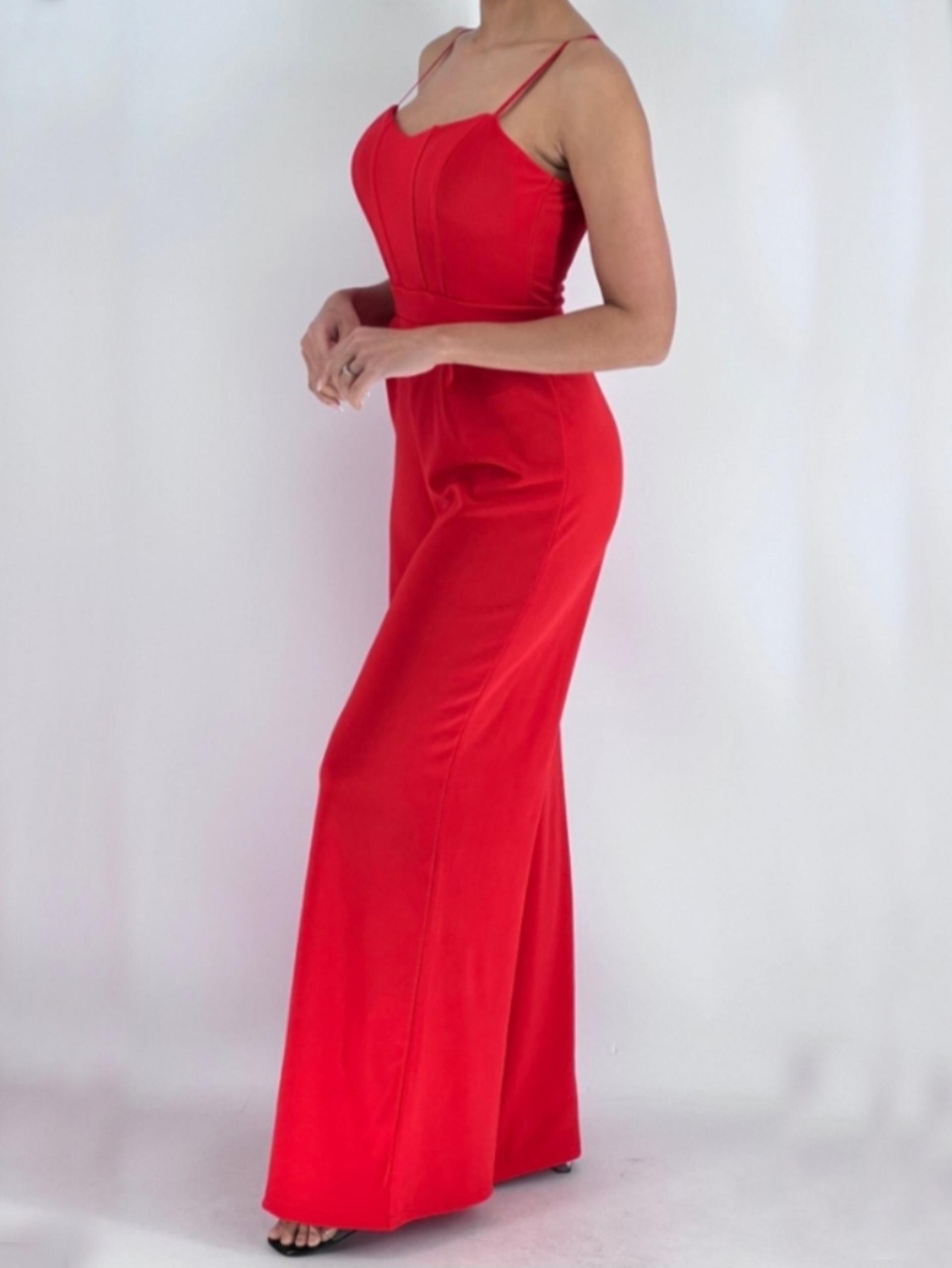 Mono de licra, con cuerpo en forma de corpiño, y tirante regulable, de camal ancho, con pinzas en la cintura y cremallera trasera.