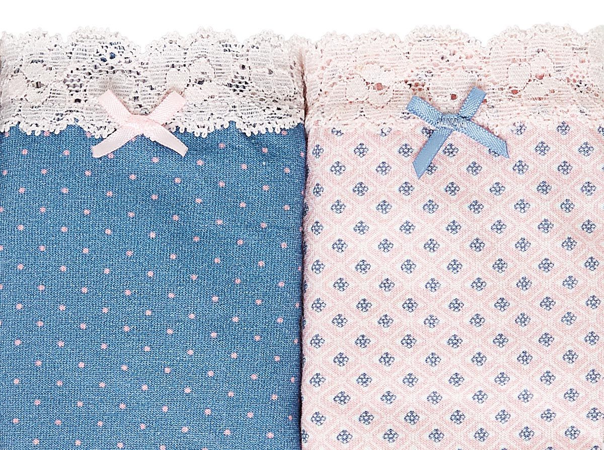 Pack de braguitas confeccionadas en algodón estampado con acabado de blonda en la cintura. Una opción natural, perfectas para todo el día.