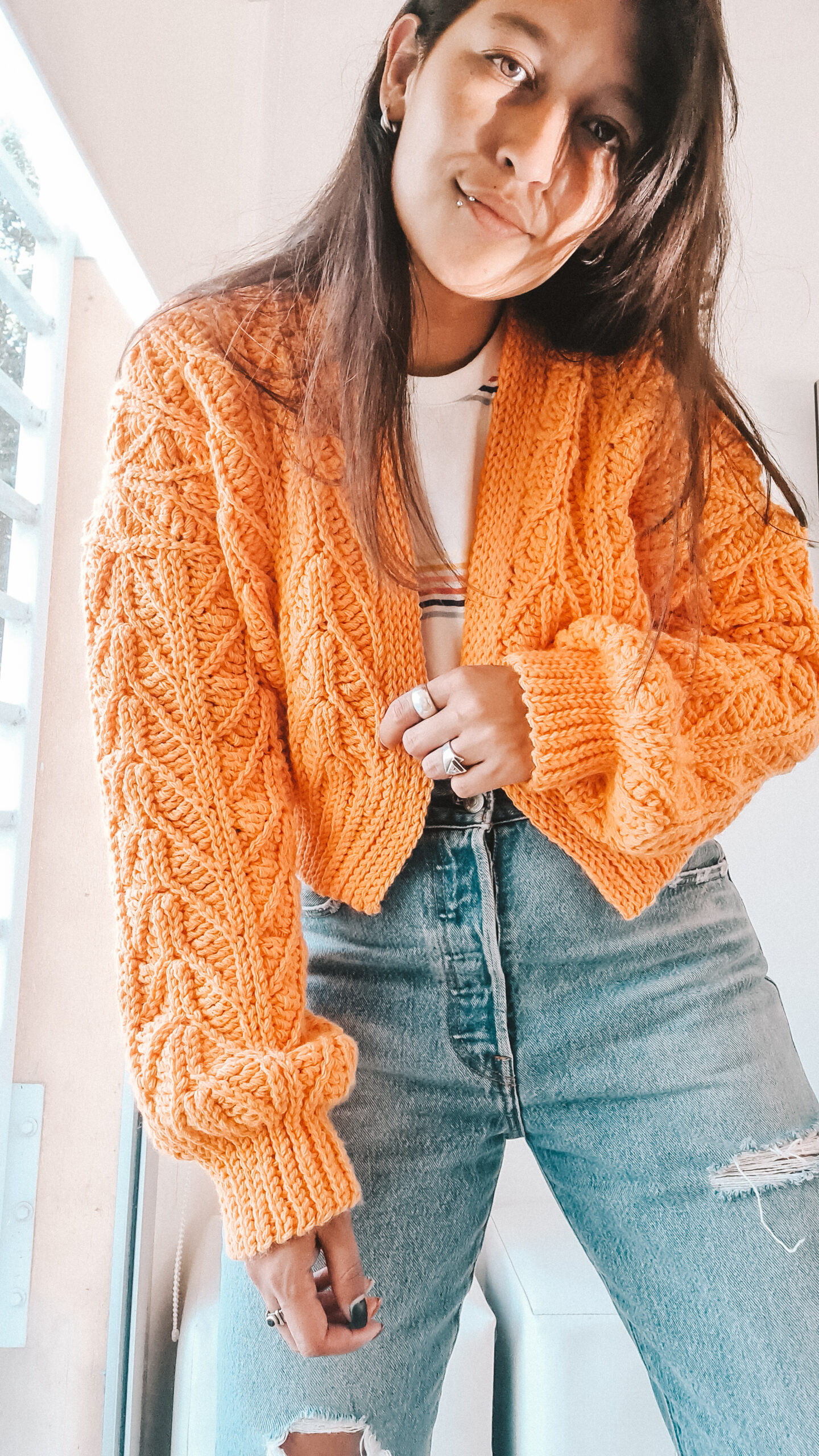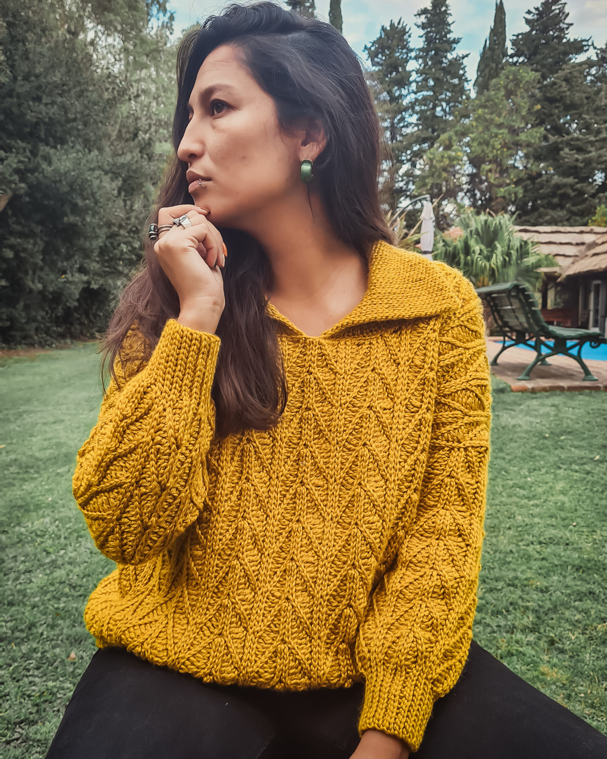 INCLUYE: PDF con la explicación escrita vuelta por vuelta para tejer el sweater o la version super simple de cardigan. Ambos para 5 talles (S, M, L, XL, y XXL). Videos explicativos. Videos de costuras y terminaciones.