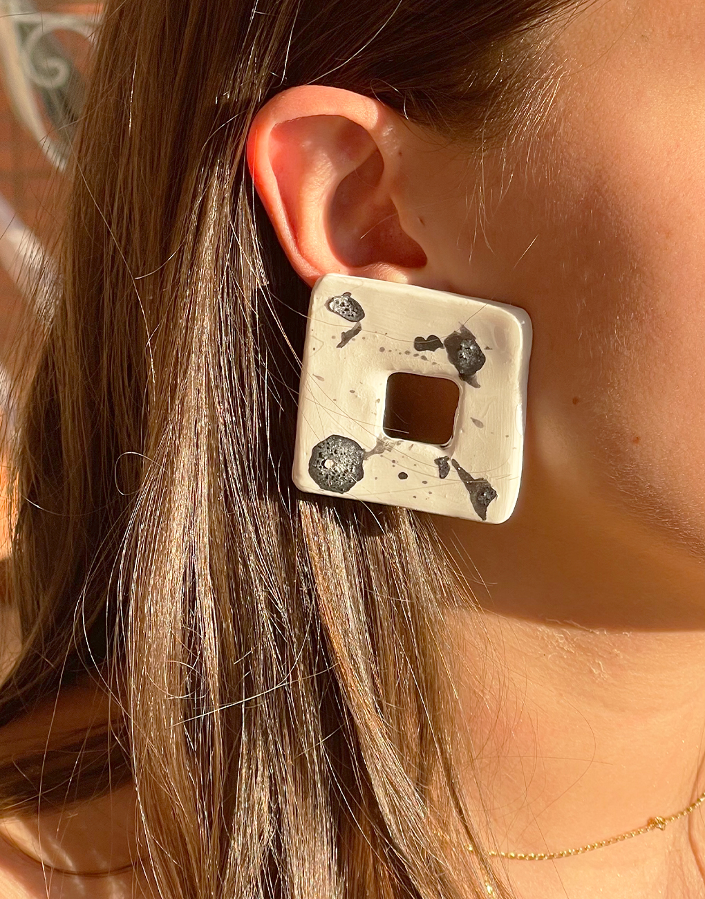 Pendientes INK de cerámica con tinta vegetal, loza, todo realizado a mano desde Asturias. con la técnica artesanal de orfebrería.
