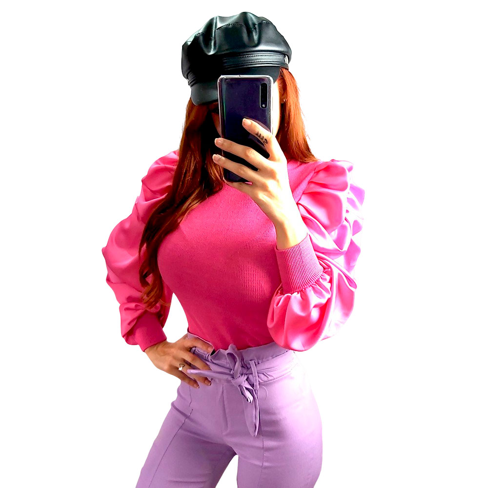 Camiseta de con cuerpo y puños de canalé y mangas de raso.