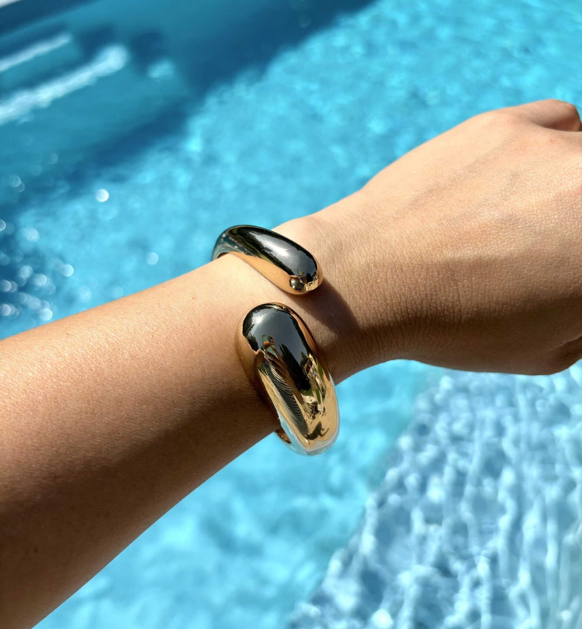 Pulsera edición SUMMER de gotas unidas de color dorado (Golden). Fabricado con material gold field.
