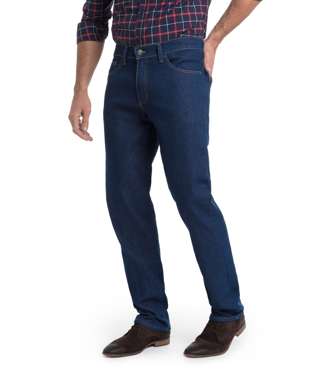Tejano básico de tipo tergal, lavado suave que le da un aspecto limpio y uniforme. El patrón es recto. Fabricado en España.