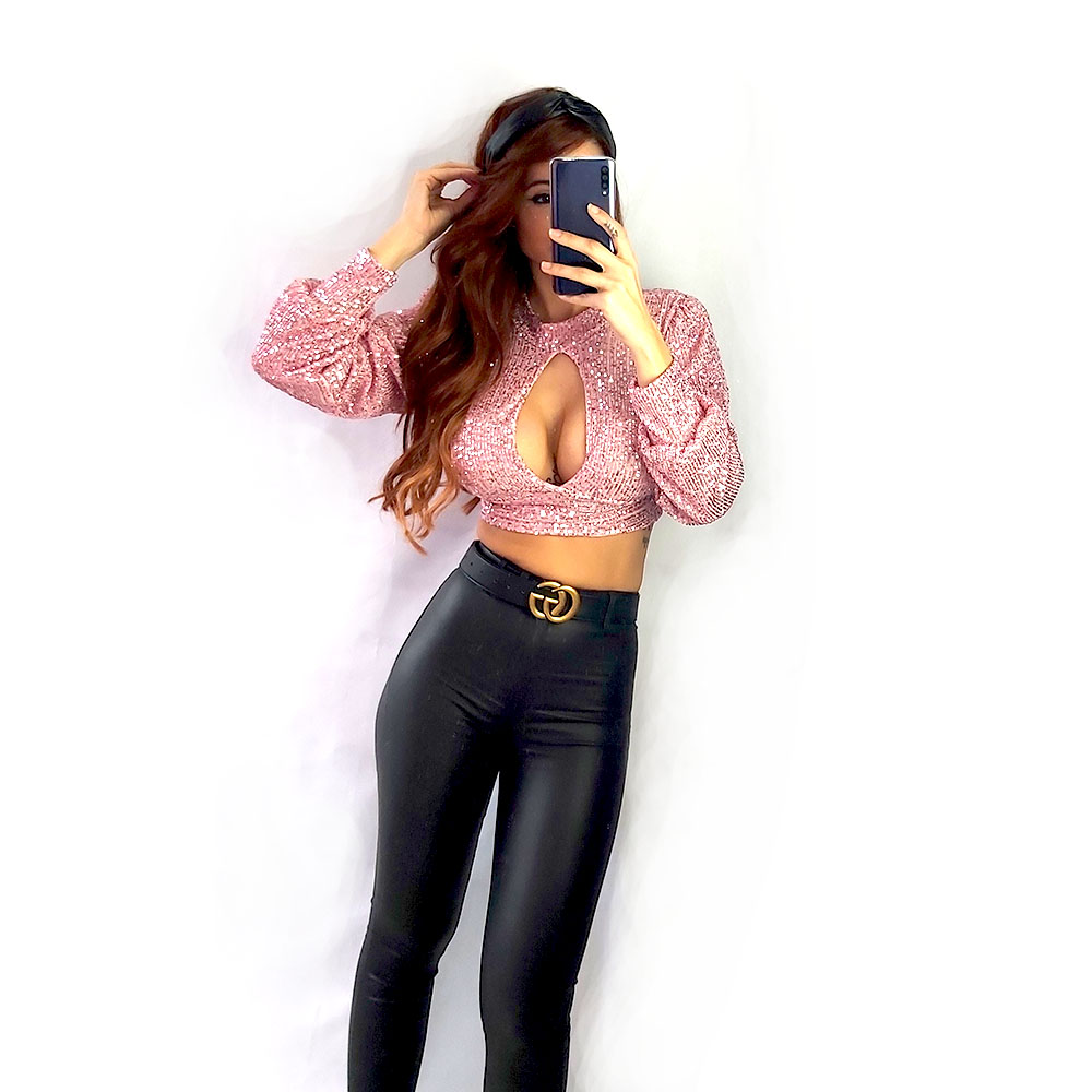 Top cuello halter con abotonadura en el cuello, y ajuste en la cintura con lazada. Queda toda la espalda descubierta, y escote en forma de lagrima, con copas para darle una bonita forma al pecho.