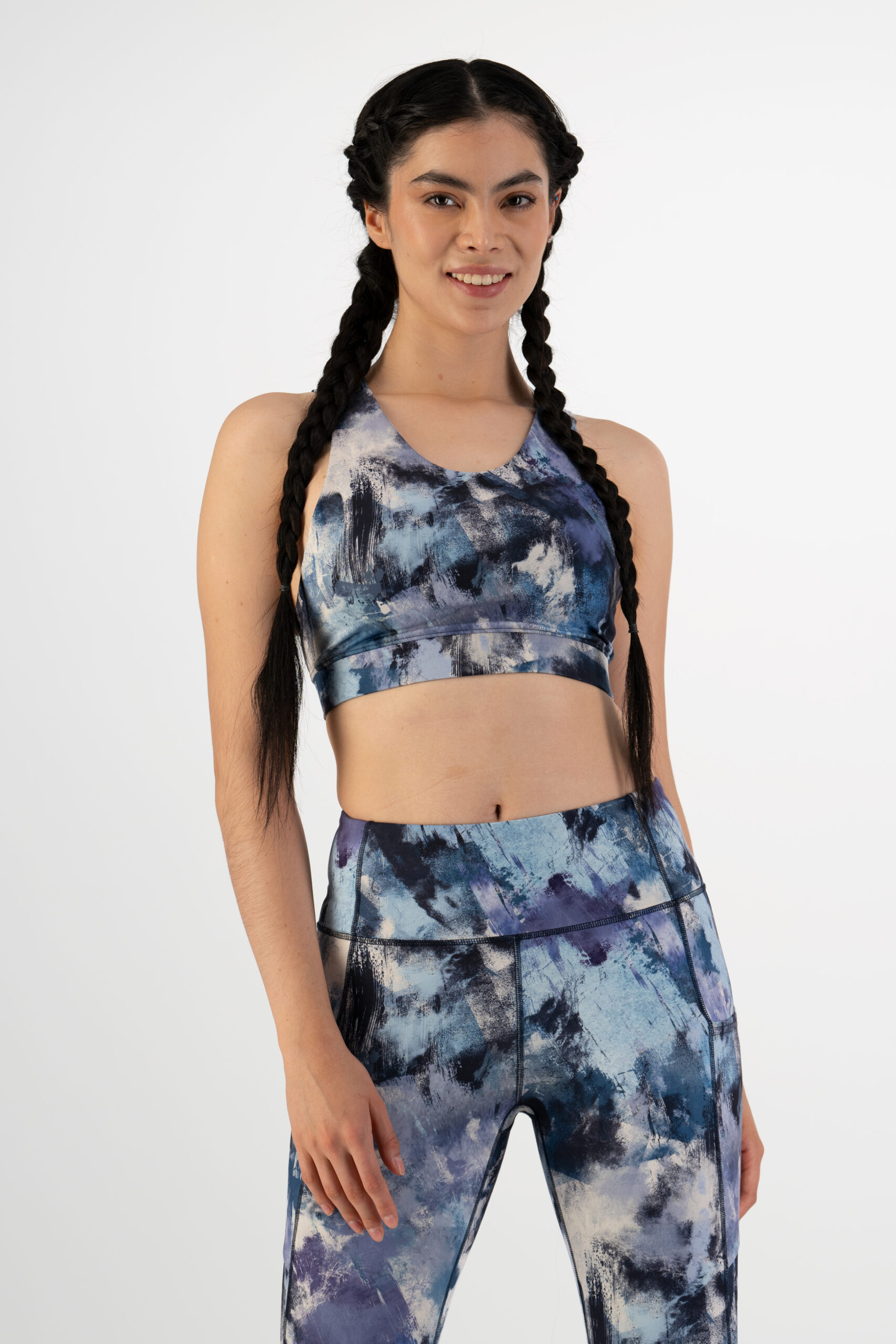 Enfrenta cada reto con la energía que te brinda el top deportivo estampado de espalda cruzada para actividades de impacto moderado.