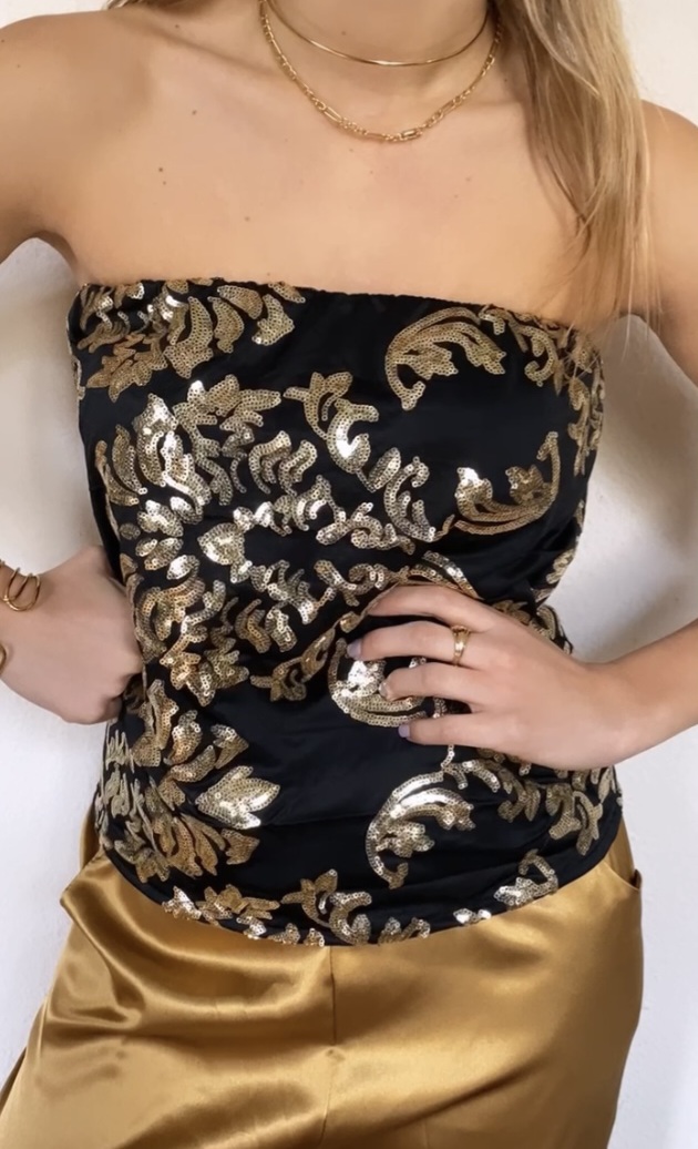 Top palabra de honor con aplicaciones de lentejuelas en color dorado