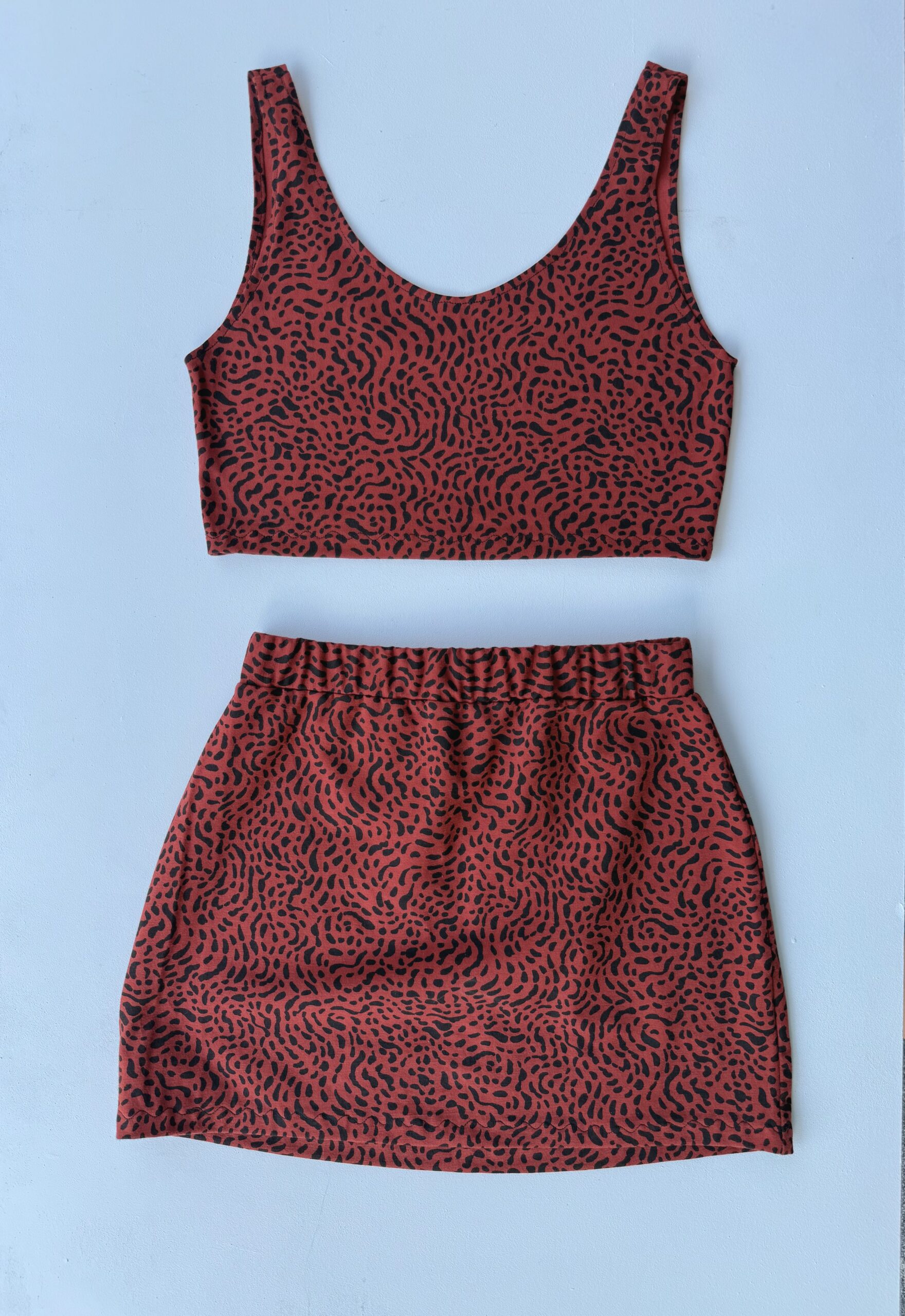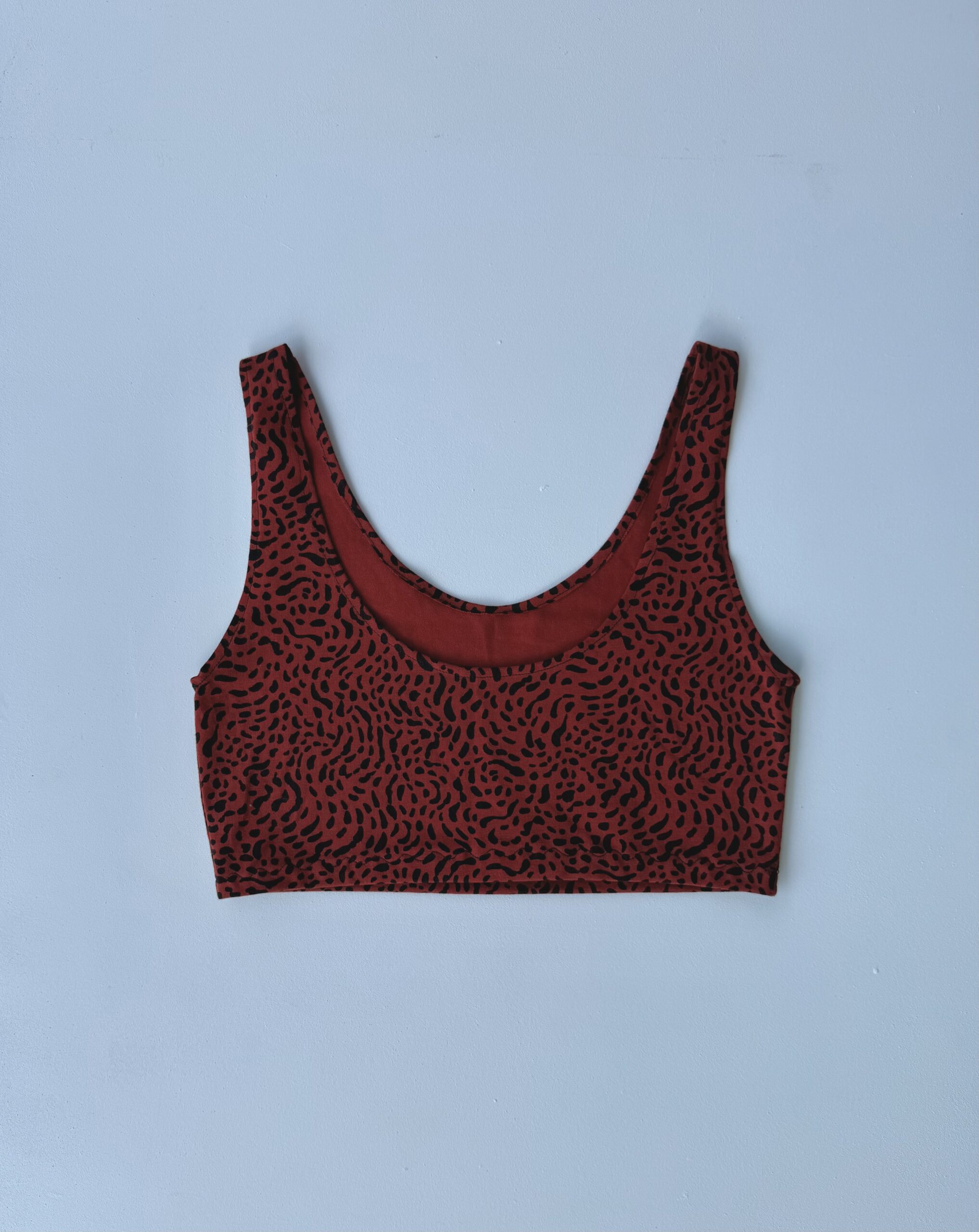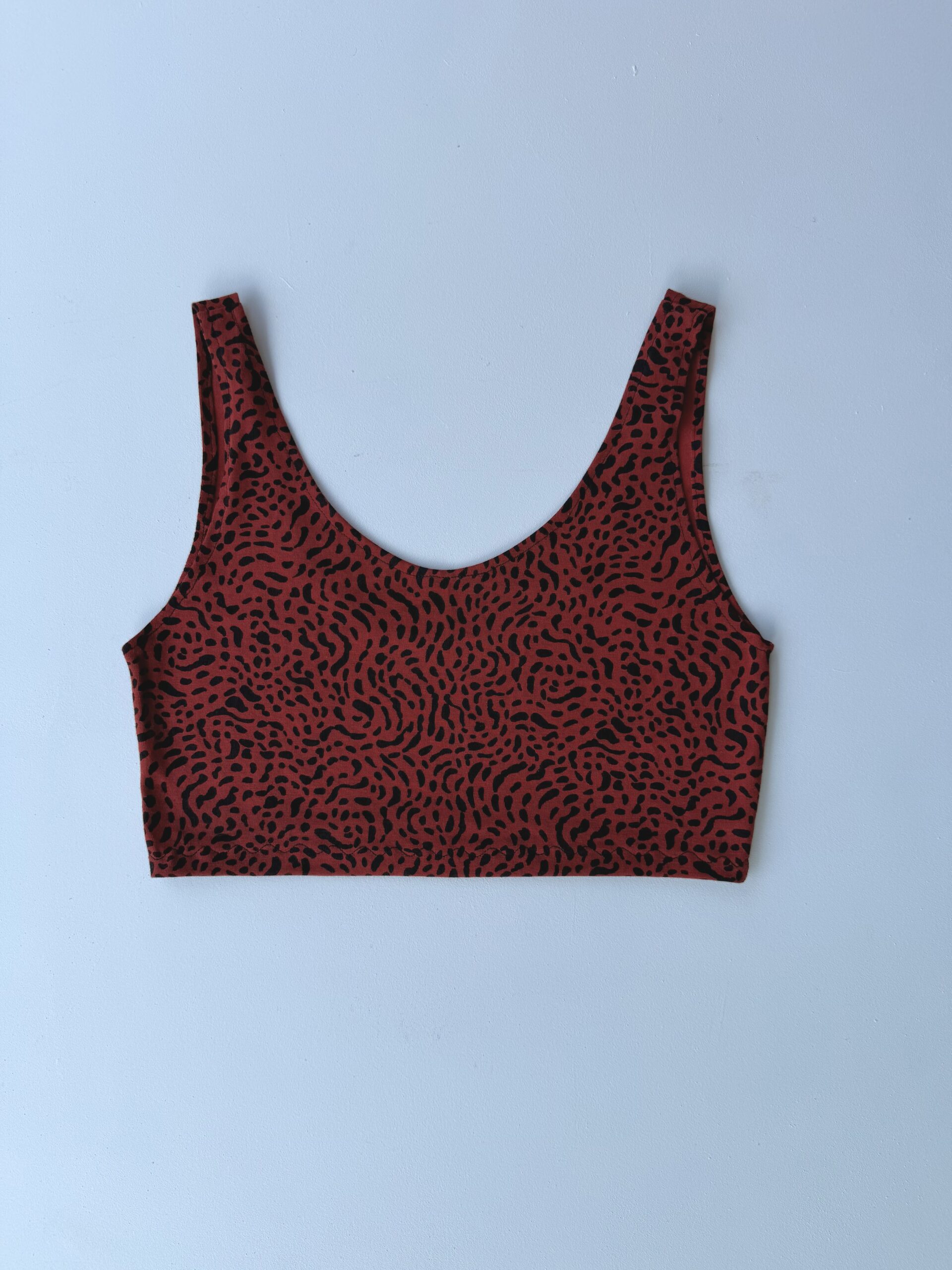 Top granate y negro de tirantes estilo animal print, ajustado al cuerpo, comodidad y rollazo, un estilo desenfadado y favorecedor.